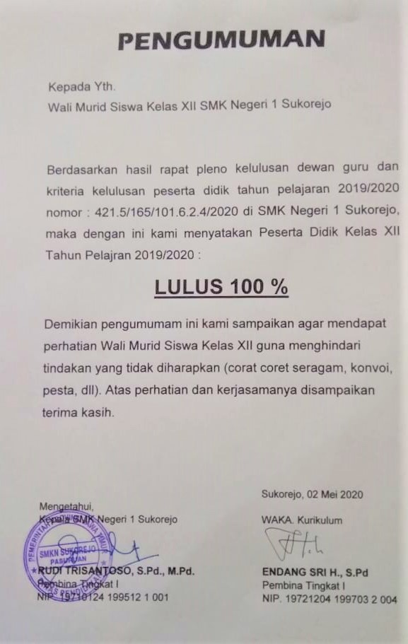 Pasuruan, 27 November 2023 – Kembali, SMKN 1 Sukorejo (SKETSU) menunjukkan eksistensinya dalam kancah prestasi. Tiga siswa berbakat dari sekolah tersebut, Nevanda Setia Ramadhan (Kelas XI TKI 1), Agnes Tasya Aurielia (Kelas X RPL 2), dan Bheby Noviyanti (Kelas X TKI 2), berhasil menyita perhatian dengan meraih Juara 1 dalam kategori Lomba Tari Grup pada Festifal Anak Gemilang. Ajang ini diselenggarakan sebagai bagian dari peringatan Hari Pahlawan Tingkat SMP/SMA di wilayah Pasuruan.