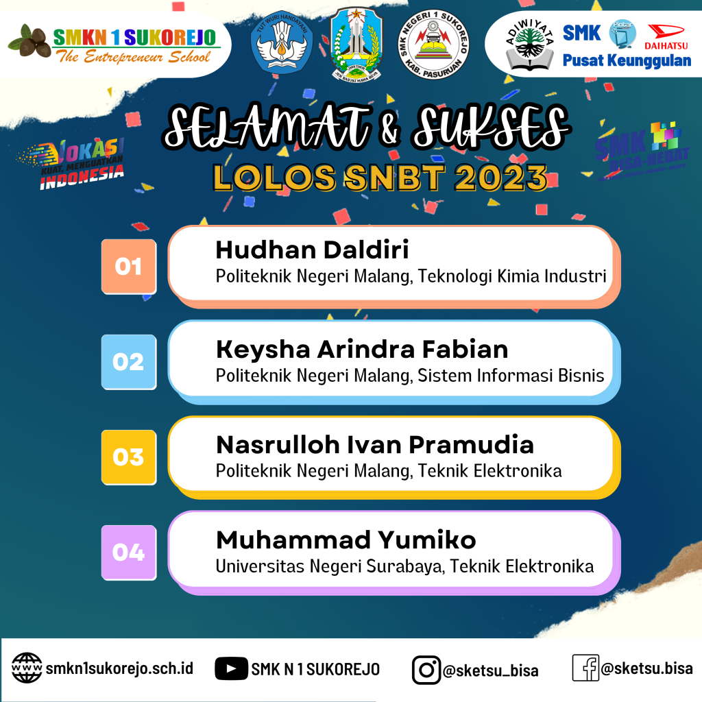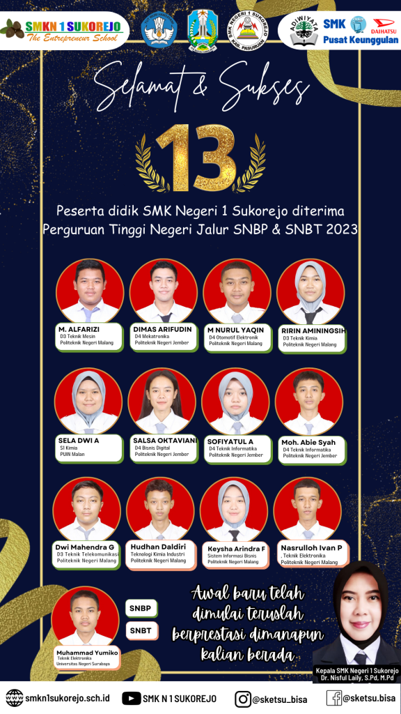 Semoga Ilmu yang diperoleh di SMK Negeri 1 Sukorejo dapat mengantarkan kalian menuju keberhasilan.