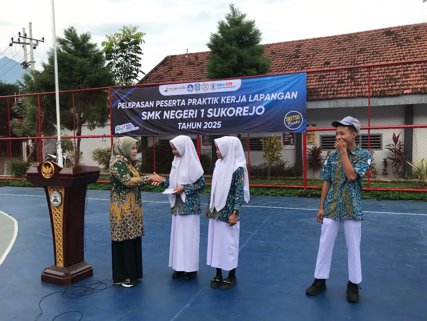 Beliau juga memberikan pesan khusus kepada siswa yang akan berangkat menjalani PKL di berbagai industri. “Anak-anakku yang akan memulai Praktik Kerja Lapangan, ingatlah bahwa kalian adalah duta SMKN 1 Sukorejo. Jaga nama baik diri, keluarga, dan sekolah. Terapkan ilmu yang telah kalian pelajari, tunjukkan sikap disiplin, tanggung jawab, dan integritas. Jadikan pengalaman ini sebagai bekal untuk masa depan kalian,” pesan beliau penuh harap.
