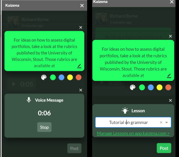Google Docs memungkinkan guru memberi feedback kepada tugas yang telah dikerjakan siswa melalui website Kaizena. Guru tak perlu repot-repot mengetik penilaian, tapi cukup memberi feedback lewat suara. Bahkan, siswa tidak perlu menunggu guru memeriksa pekerjaan mereka. Sebaliknya, mereka dapat meminta saran dan umpan balik yang dibutuhkannya.