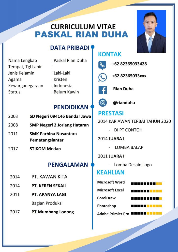 Contoh Curriculum Vittae Informasi Sekolah Kegiatan BKK Lowongan Kerja 19 Januari 201922 November 2021 adminLeave a Comment on Contoh Curriculum Vittae CURRICULUM VITTAEBERBAHASA INDONESIA CURRICULUM VITTAEBERBAHASA INGGRIS