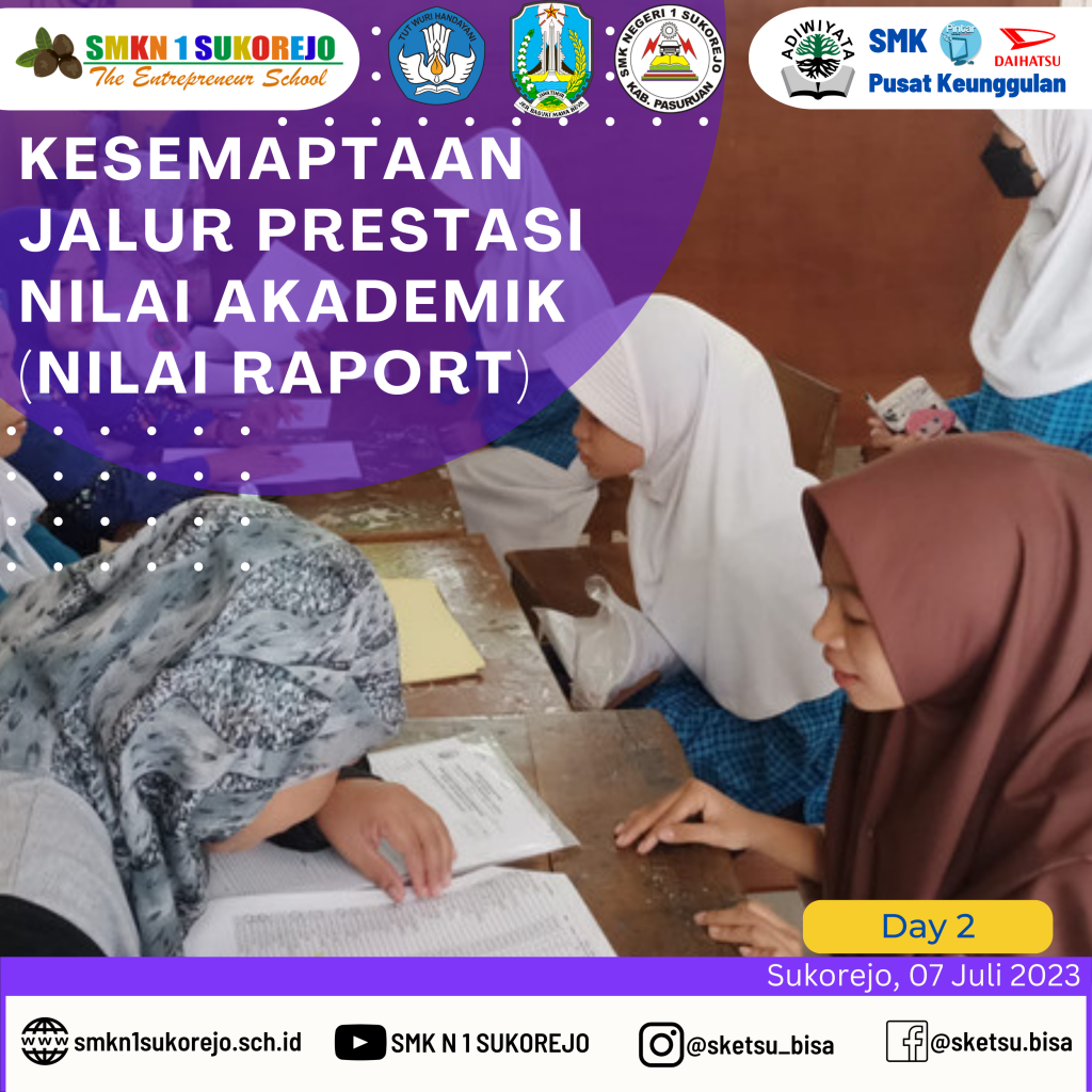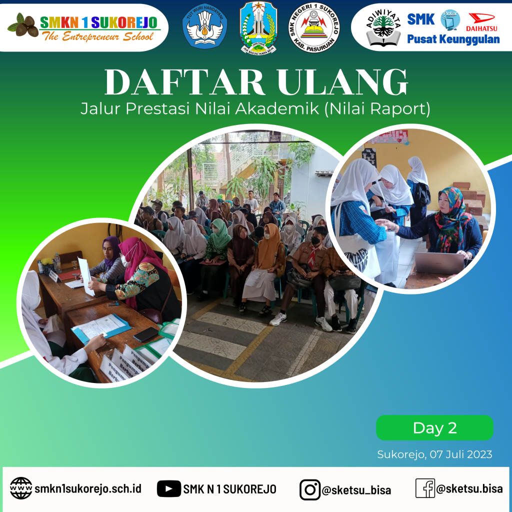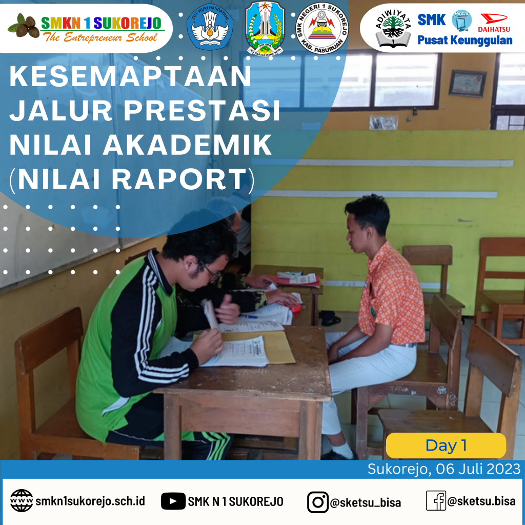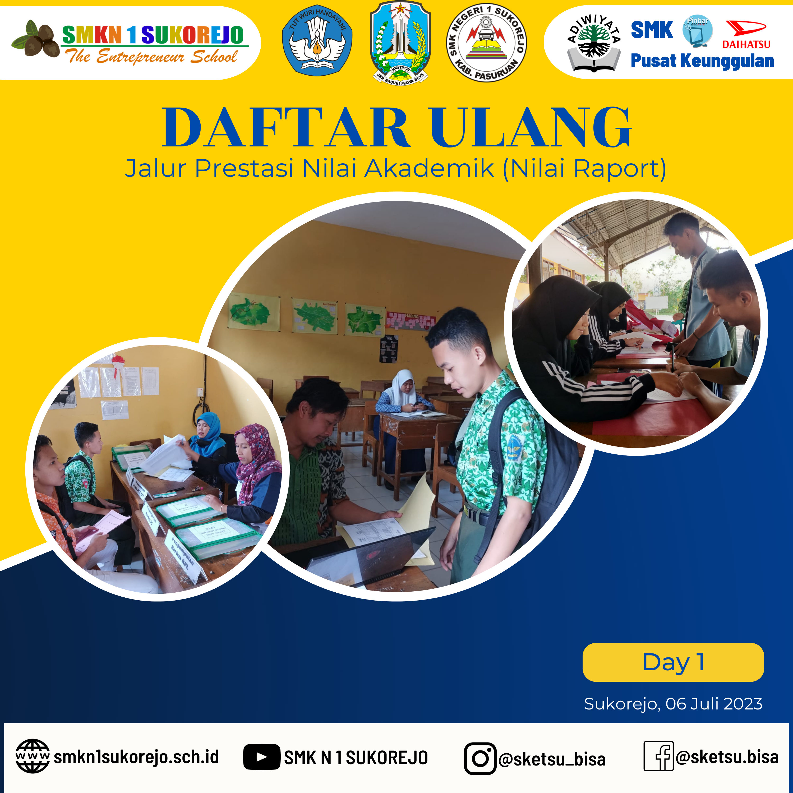 DAFTAR ULANG & KESEMAPTAAN PPDB JALUR PRESTASI NILAI AKADEMIK (NILAI RAPORT) Agenda Sekolah Informasi Sekolah Kegiatan Sekolah 6 Juli 20237 Juli 2023 adminLeave a Comment on DAFTAR ULANG & KESEMAPTAAN PPDB JALUR PRESTASI NILAI AKADEMIK (NILAI RAPORT) [SKETSU BERAKSI]Daftar Ulang & Kesemaptaan Jalur Prestasi Nilai AkademikSelamat untuk adik adik yang sudah diterima dijalur Prestasi Nilai Akademik… Jangan lupa segera lakukan Daftar Ulang secara offline pada :Hari : Kamis – SabtuTanggal : 06 – 08 Juli 2023Pukul : 08.00 – 11.00 WIBTempat : SMK Negeri 1 SukorejoKami tunggu kedatangannya 🤗#smkn1sukorejo#sketsu#smkbisa#smkhebat#sketsubisahebat#sketsuberaksi#berakhlak#berkarya#berprestasi#ppdb2023#ppdbjatim2023#prestasinilaiakademik2023 GALLERY