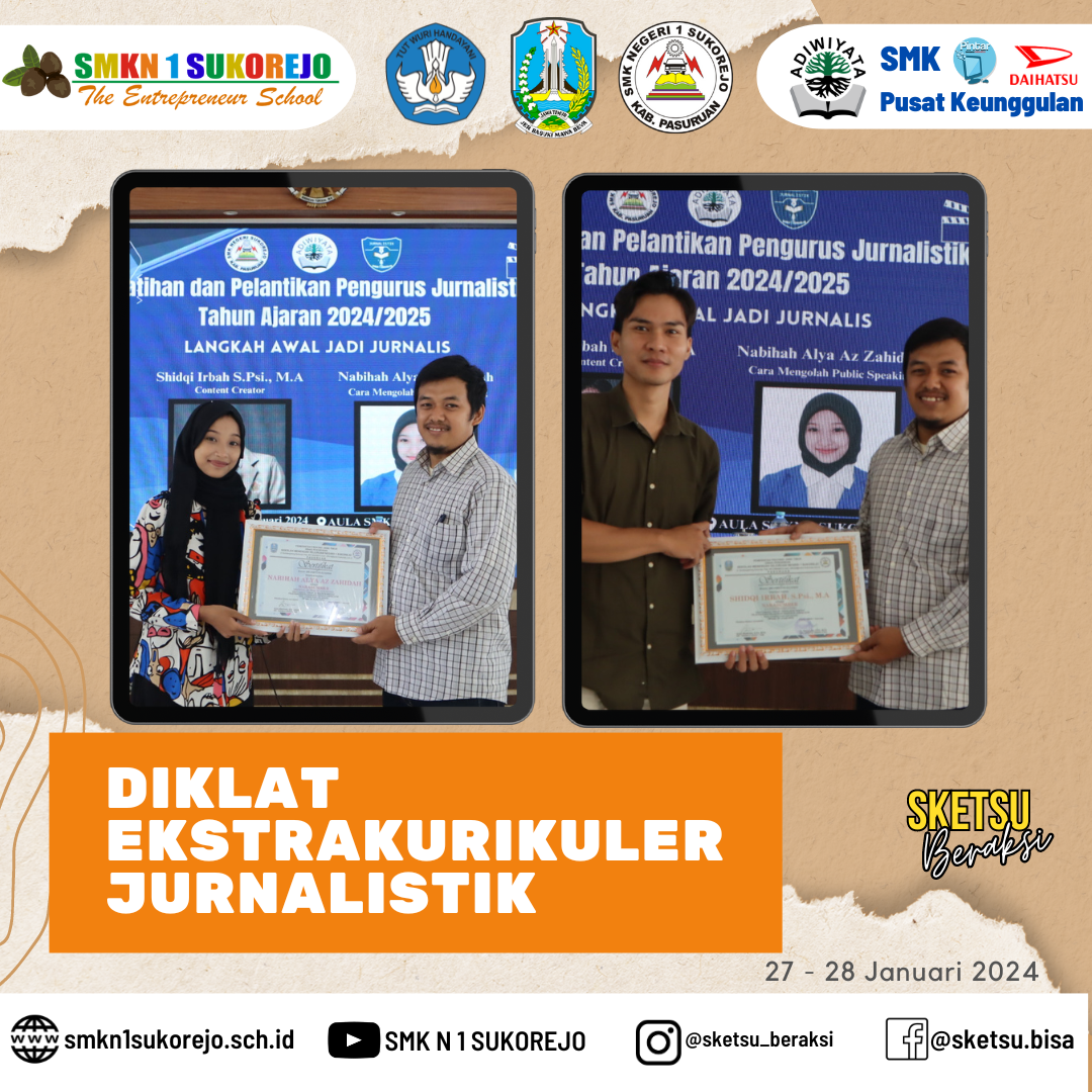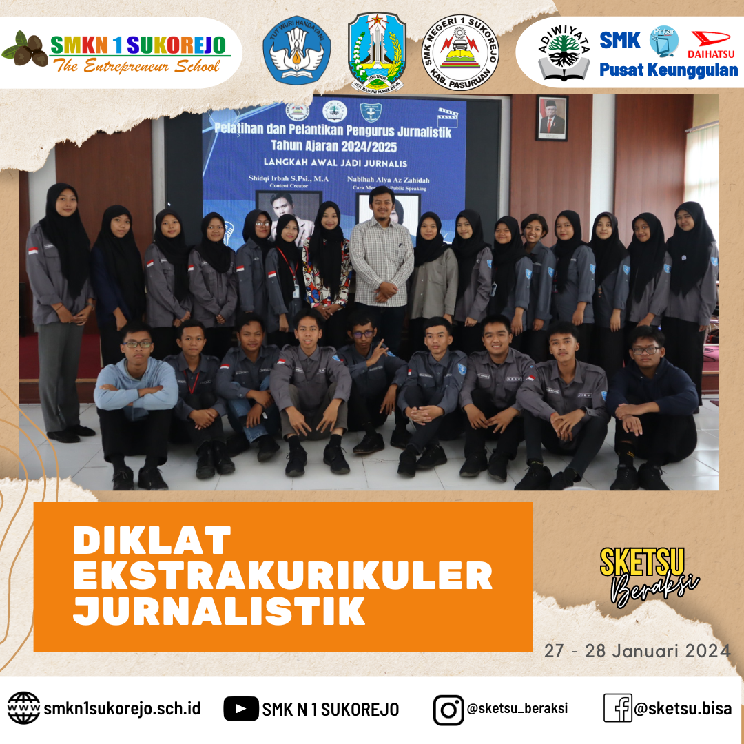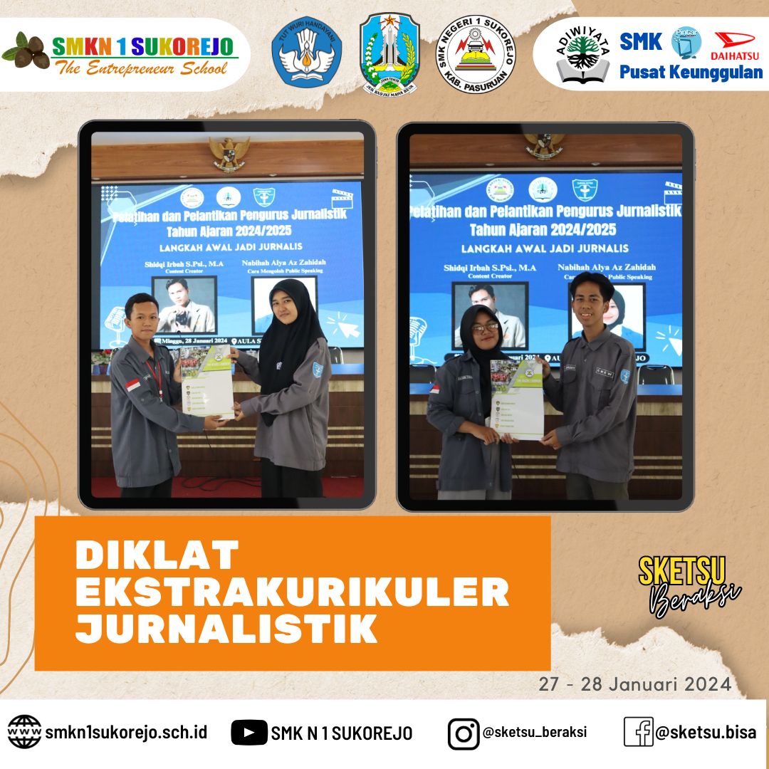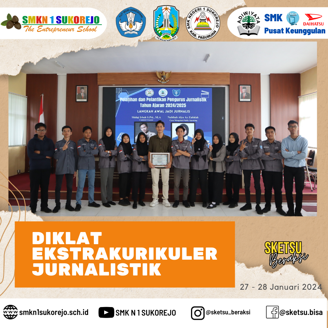 Ekstrakurikuler Jurnalistik adakan diklat untuk mempererat hubungan antar anggota sekaligus upgrade ilmu di bidang jurnalistik dengan mendatangkan narasumber yang kompeten diantaranya yaitu :