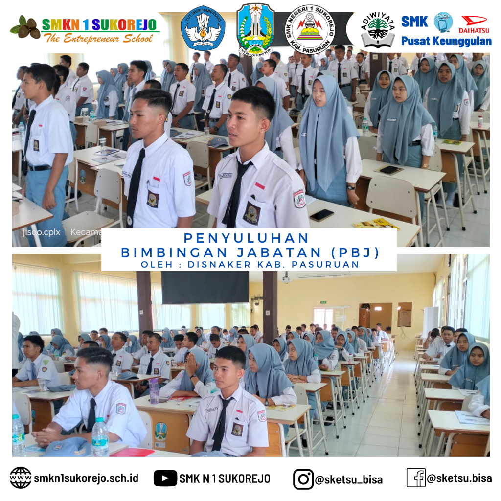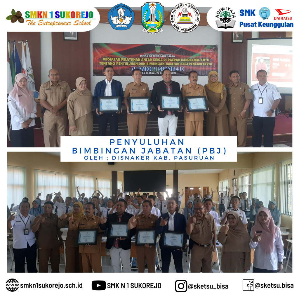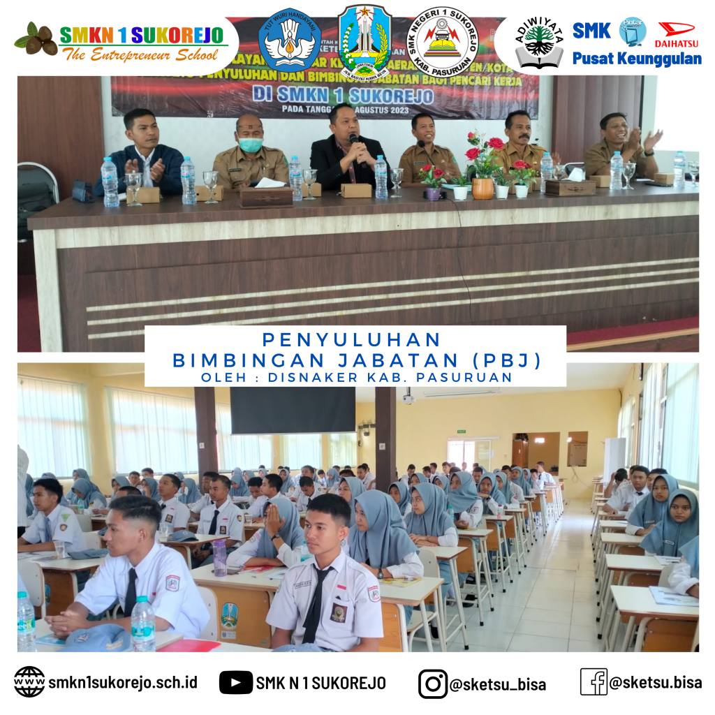 Sukorejo, 22 Agustus 2023 SMK Negeri 1 Sukorejo kembali menjadi tuan rumah pelaksanaan “Sosialisasi Program Penempatan Tenaga Kerja dan Kegiatan Pelayanan Antar Kerja (Penyuluhan dan Bimbingan Jabatan /PBJ)” yang diselenggarakan oleh Dinas Ketenagakerjaan Kabupaten Pasuruan.