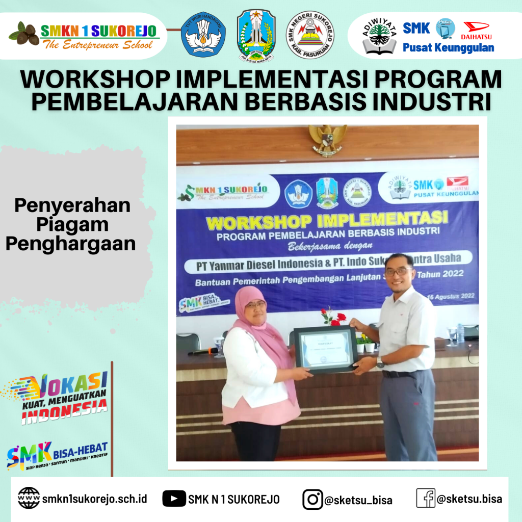 Sebagai upaya menyiapkan lulusan agar dapat terserap di dunia kerja, maka SMK Negeri 1 Sukorejo mengimplementasikan pembelajaran berbasis industri. Pada workshop sebelumnya SMK Negeri 1 Sukorejo menggandeng PT. ISSU dan sekarang berkesempatan mengundang PT. Yanmar Diesel Indonesia (YADIN).