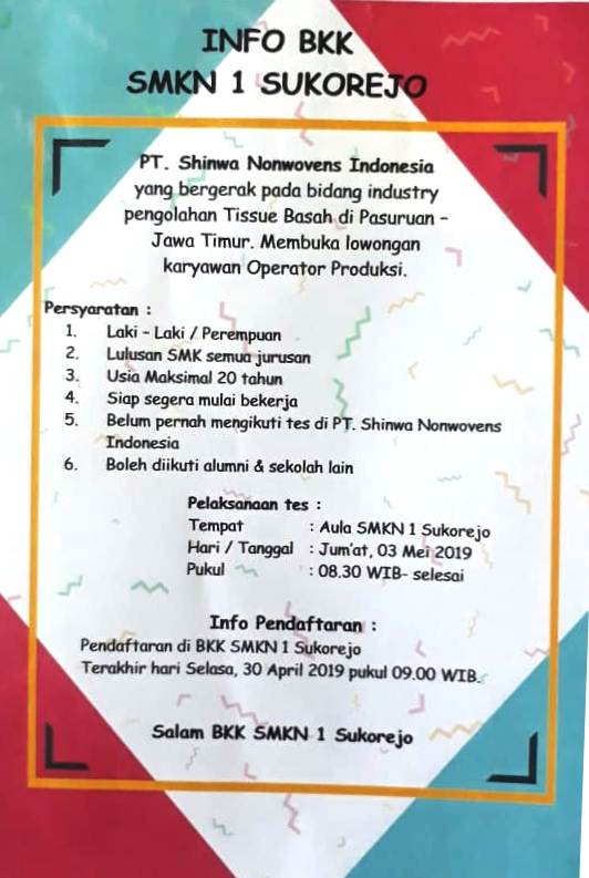 Info Lowongan Kerja di Shinwa Nonwovens Lowongan Kerja 26 April 201926 April 2019 adminLeave a Comment on Info Lowongan Kerja di Shinwa Nonwovens