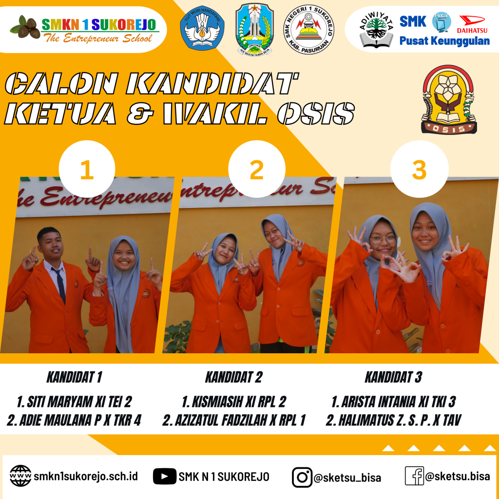 Yuk pilih yang terbaik menurut kalian demi kebaikan dan kemajuan SMK Negeri 1 Sukorejo satu tahun kedepan… Jangan golput yaa !