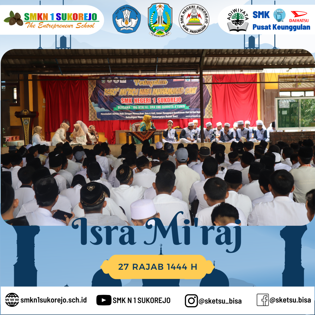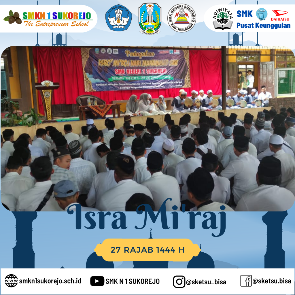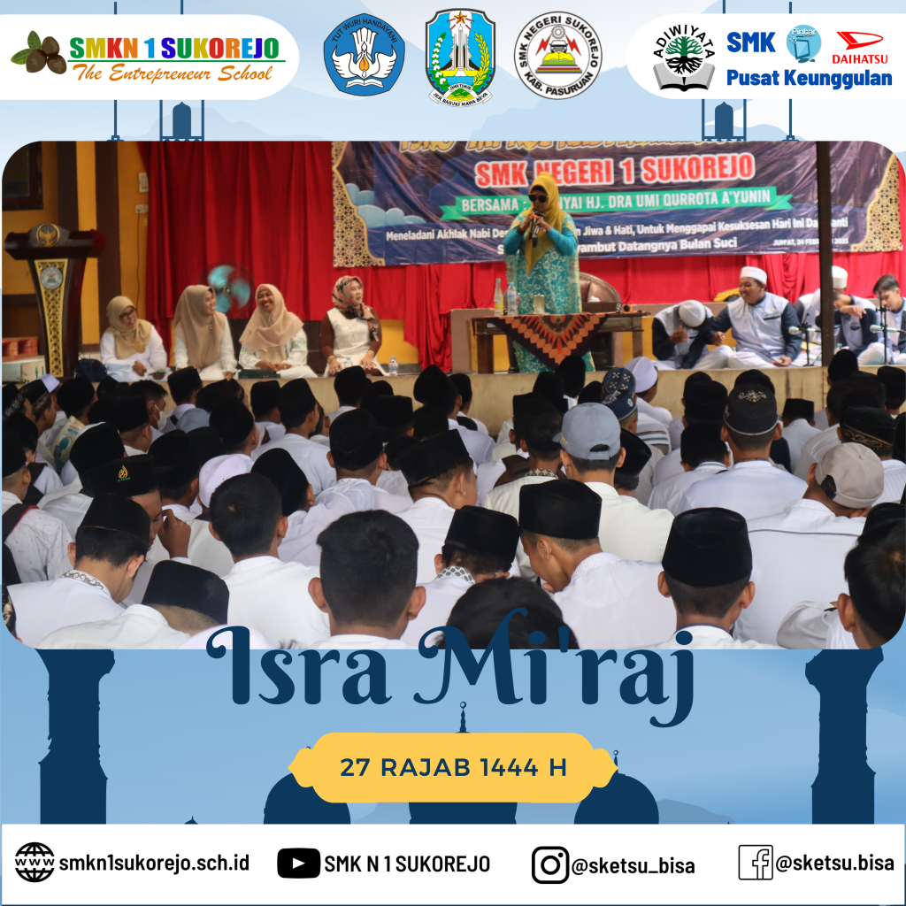 Sukorejo, 24 Februari 2023 setelah kegiatan PBS (Pekan Berkunjung Sketsu) usai, SMK Negeri 1 Sukorejo mengadakan pengajian dalam rangka memperingati Isra’ Mi’raj Nabi Muhammad SAW.