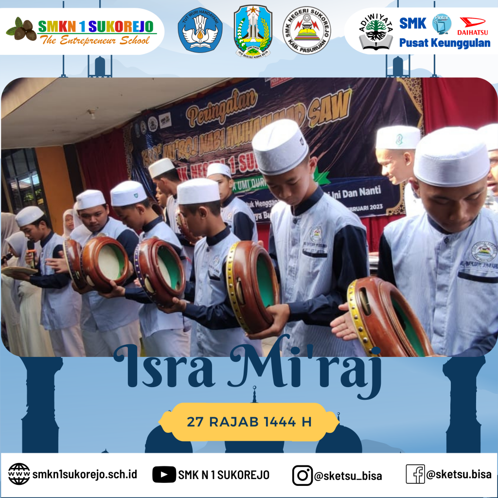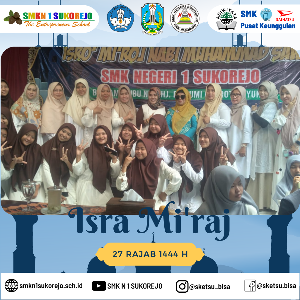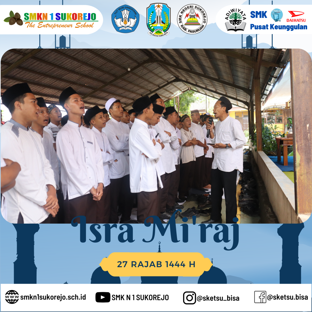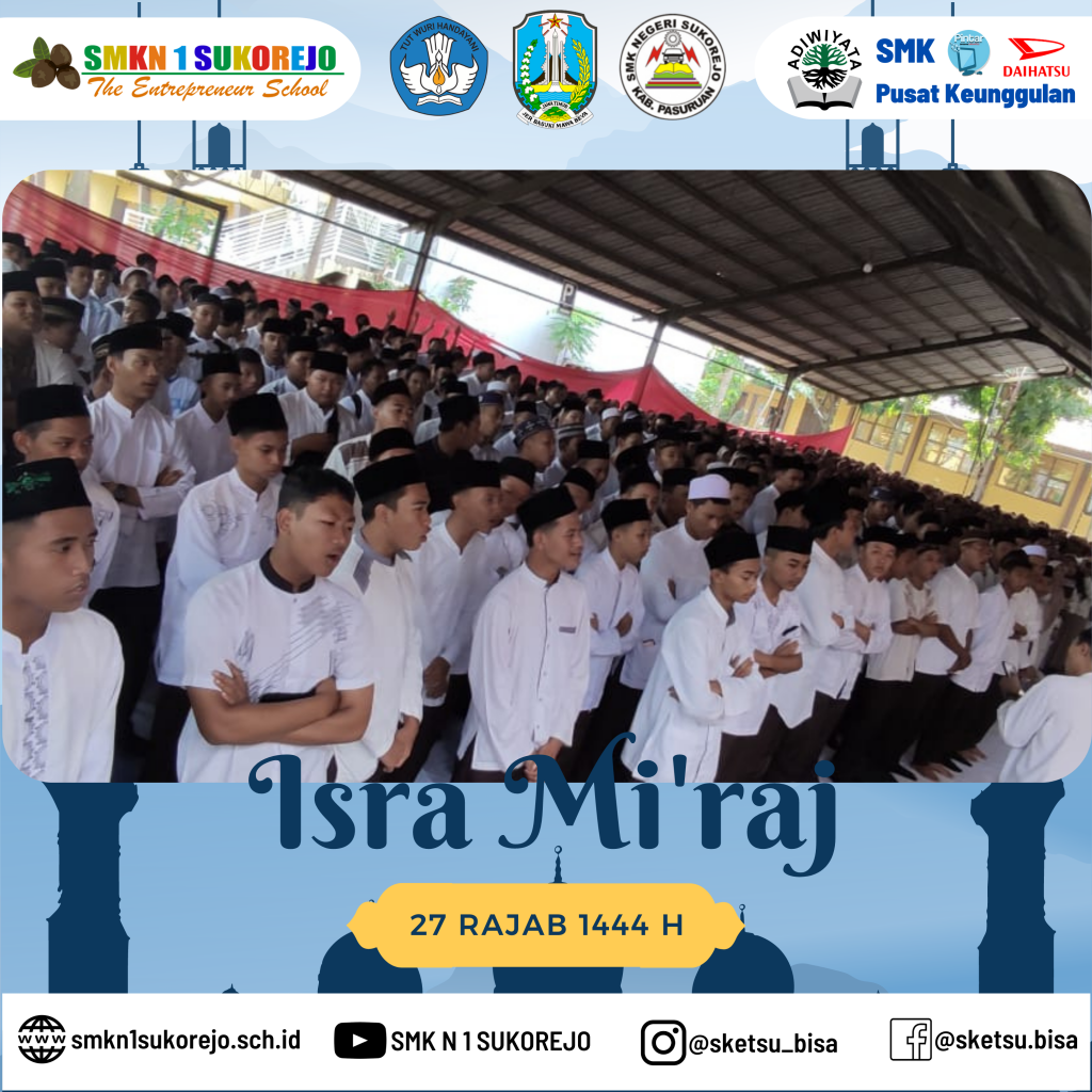 Sukorejo, 24 Februari 2023 setelah kegiatan PBS (Pekan Berkunjung Sketsu) usai, SMK Negeri 1 Sukorejo mengadakan pengajian dalam rangka memperingati Isra’ Mi’raj Nabi Muhammad SAW.
