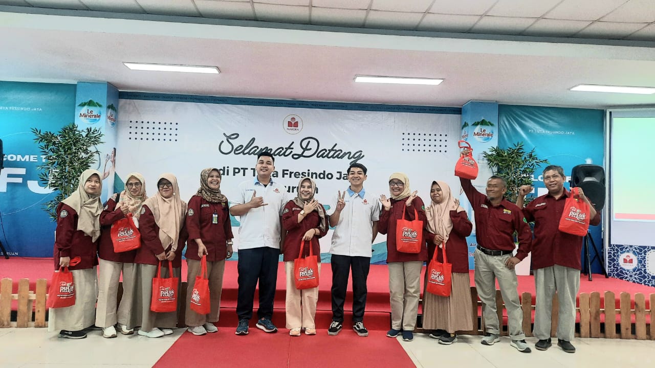 Kehadiran rombongan sekolah langsung disambut hangat oleh pihak manajemen PT. Tirta Fresindo Jaya. Kunjungan dimulai dengan sesi foto bersama di potobooth yang kreatif, menciptakan momen yang ceria sekaligus mempererat kebersamaan. Tak lama kemudian, rombongan dibagi menjadi empat kelompok, masing-masing didampingi oleh empat orang guru, untuk memulai petualangan di area produksi.