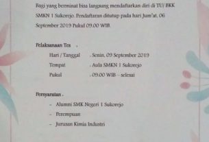 Lamaran dikumpulkan diruang BKK terakhir tanggal 20 April 2022.