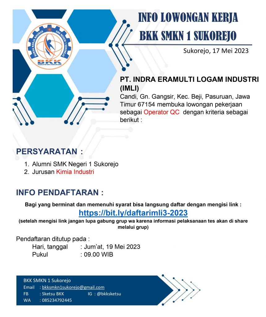 Candi, Gn. Gangsir, Kec. Beji, Pasuruan, Jawa Timur 67154 membuka lowongan pekerjaan sebagai operator QC dengan kriteria sebagaimana tercantum pada brosur.