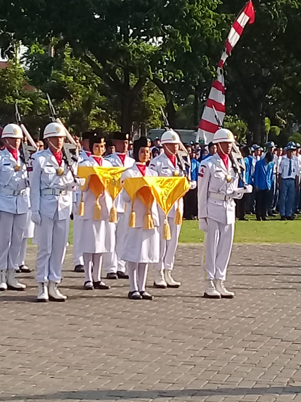 Dalam rangka memperingati HUT Kemerdekaan Republik Indonesia ke-74, salah satu siswi SMK N 1 Sukorejo mengikuti upacara Bendera yang dipimpin oleh Bupati Pasuruan, HM Irsyad Yusuf, di Alun-alun Bangil, Sabtu, 17 Agustus 2019. 3 kelompok barisan Pasukan Pengibar Bendera Pusaka (Paskibraka) yang mengibarkan bendera merah putih adalah Sulistyowati Adi Handayani (SMAN I Gondangwetan), M Hudan Ade Hafif R.T (SMAN I Purwosari) dan M Hisyam Alwandi (SMAN I Purwosari) yang terpilih menjadi petugas Pengibar Bendera Pusaka, serta Junia Novi Kartika Sari (SMKN I Sukorejo) dan Dyah Sasi Kurnia (SMAN I Kejayan) sebagai Pembawa Bendera Merah Putih.