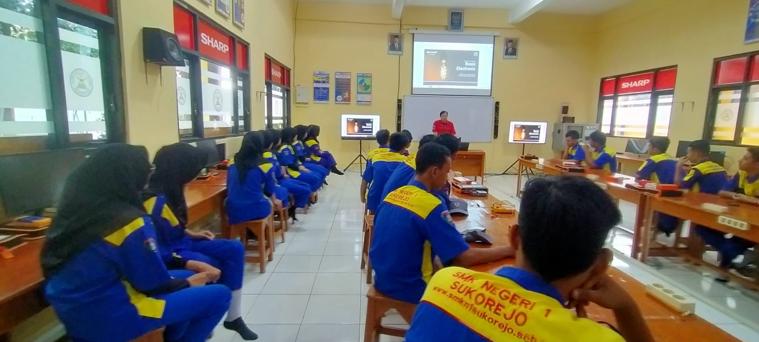 Pada hari Kamis, tanggal 21 Maret 2024, SMKN 1 Sukorejo melaksanakan pembelajaran perdana Sharp Class yang diikuti oleh 24 siswa Jurusan Teknik Audio Video (TAV) secara daring dan luring. Sebanyak 25 siswa terpilih, yang telah melalui seleksi ketat oleh tim guru dan PT. Sharp Electronics Indonesia, berpartisipasi aktif dalam kegiatan ini, meskipun satu siswa tidak dapat mengikuti kegiatan karena alasan kesehatan.