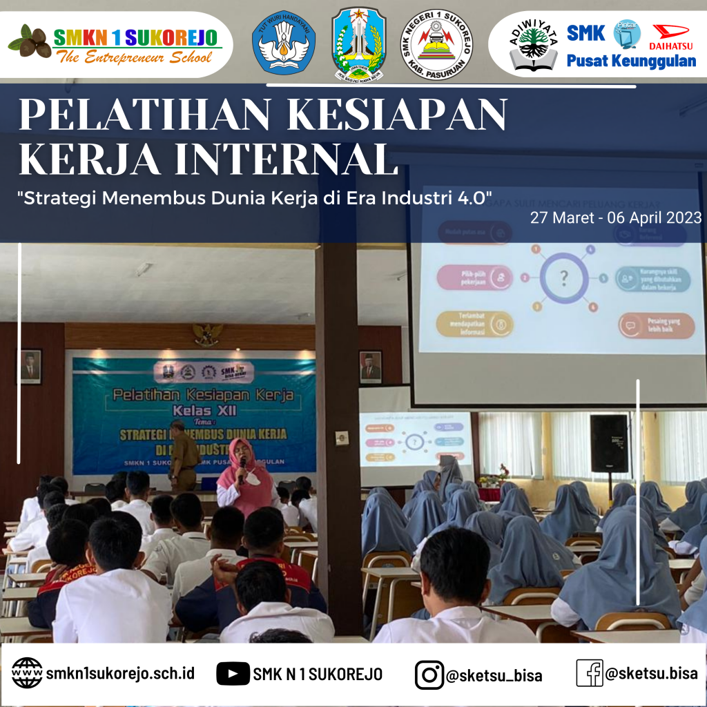 Sukorejo, 27 Maret 2023 SMK Negeri 1 Sukorejo melaksanakan Pelatihan Kesiapan Kerja untuk kelas XII.