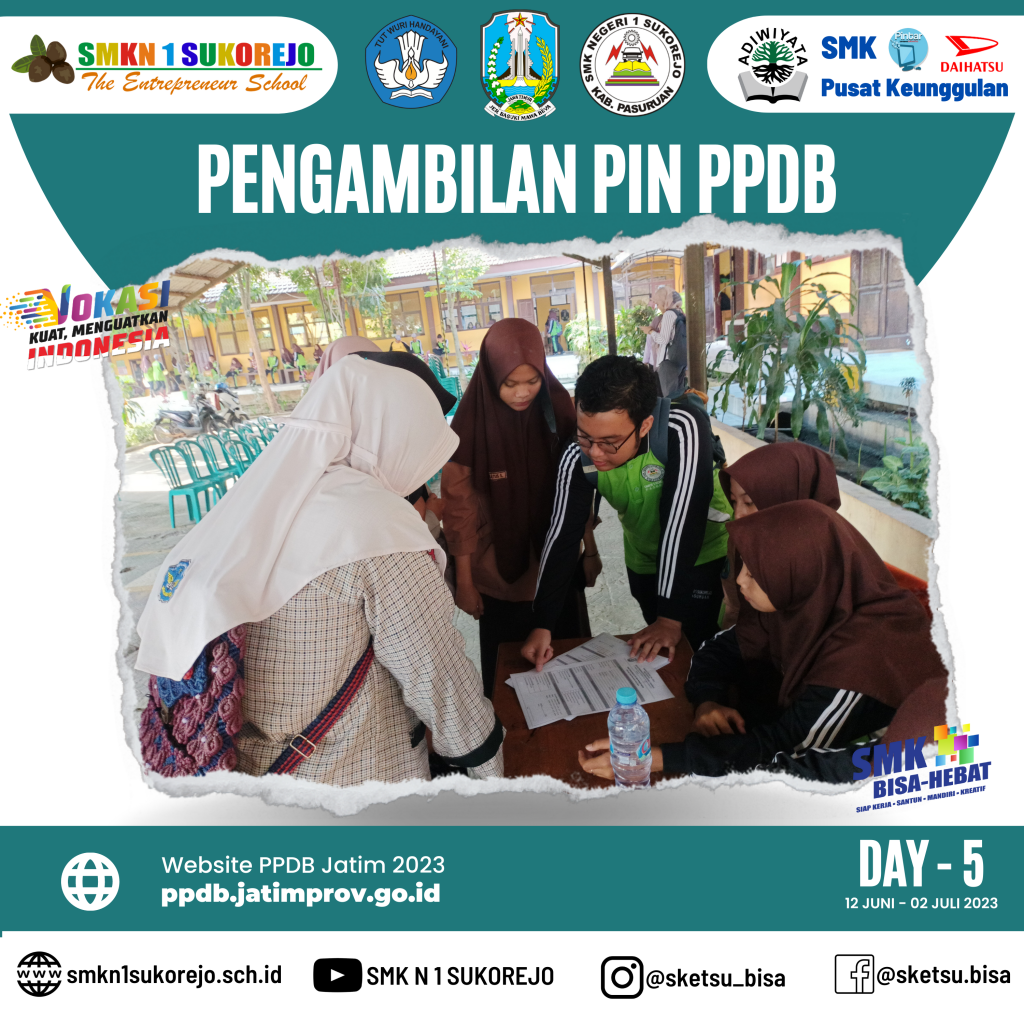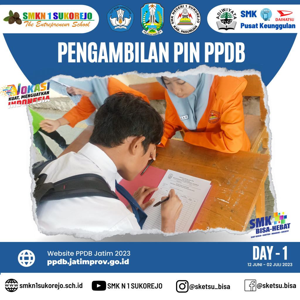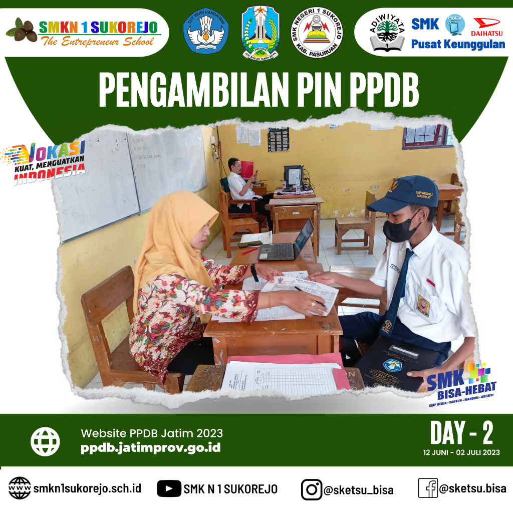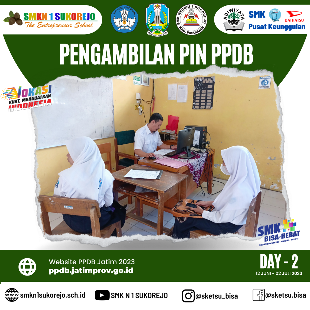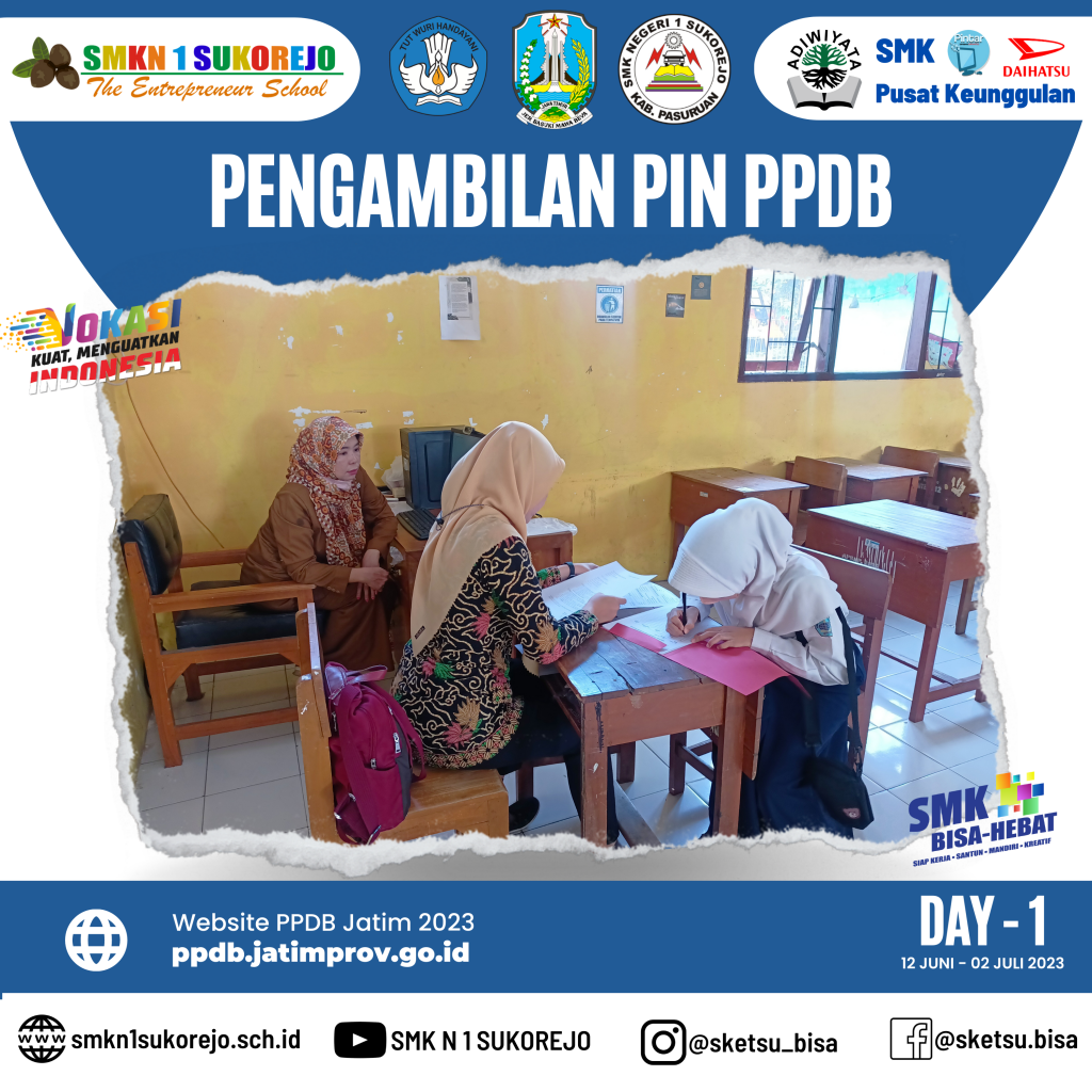 Sukorejo, 12 Juni 2023. Pengambilan Pin PPDB telah DIBUKA ! Puluhan peserta didik dari SMP maupun MTs hadir ke SMK Negeri 1 Sukorejo untuk melakukan proses pengambilan Pin PPDB.