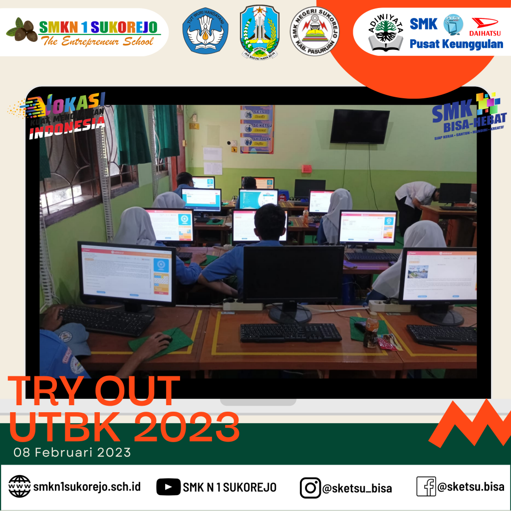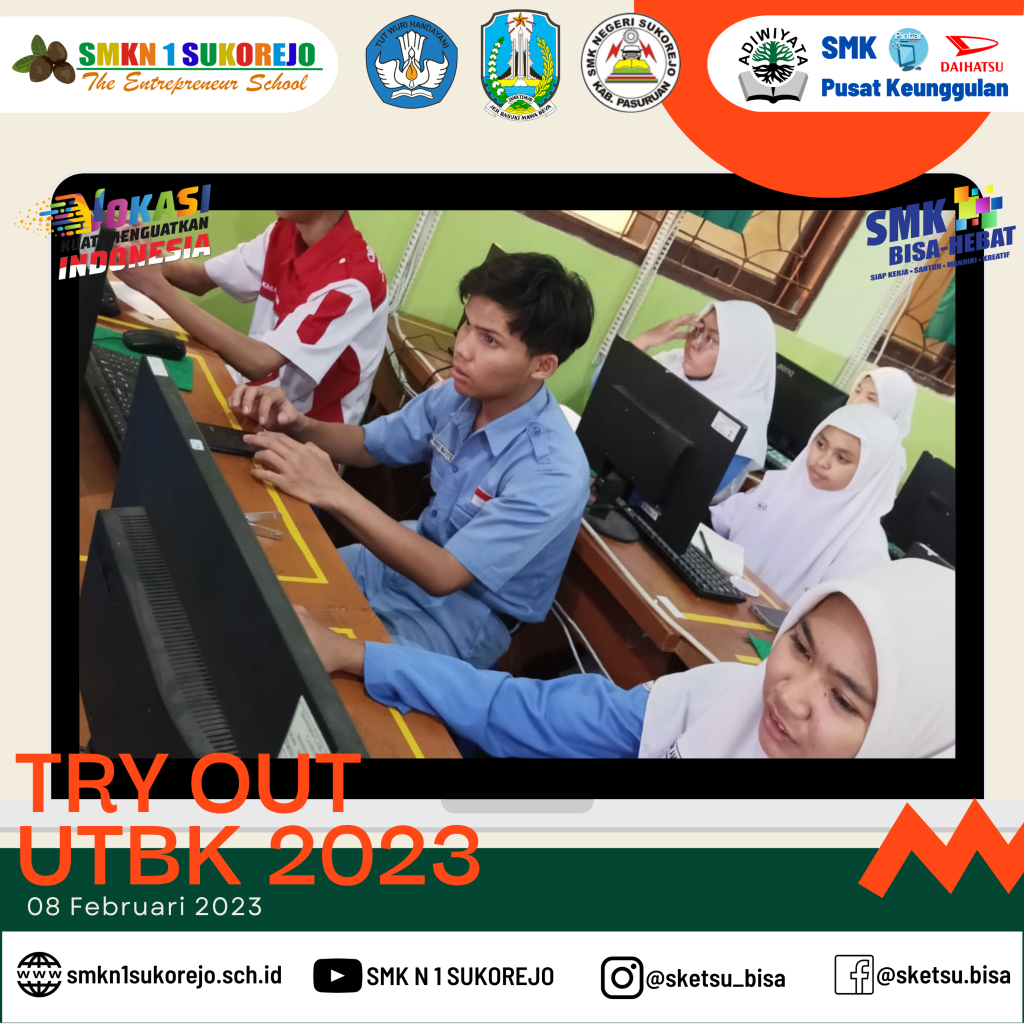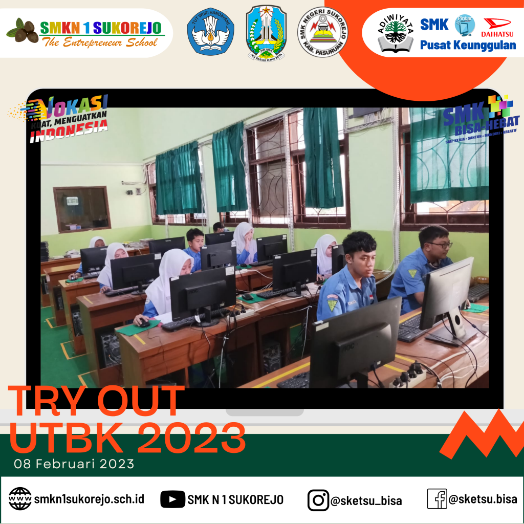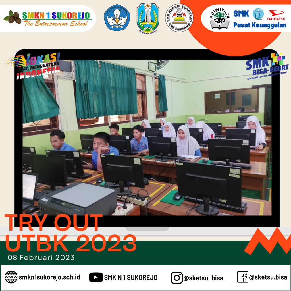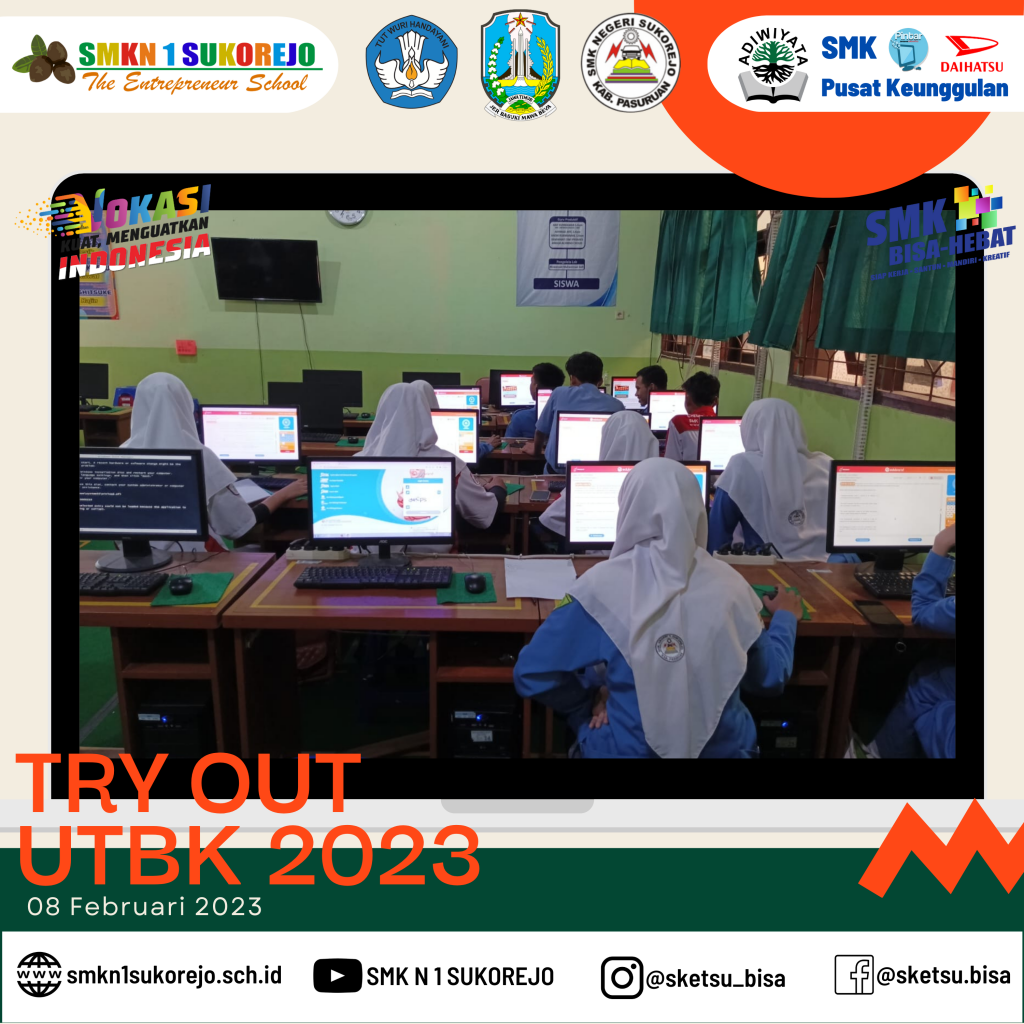 Semoga dengan mengikuti Try Out peserta didik SMK Negeri 1 Sukorejo berhasil mendapatkan nilai maksimal saat UTBK dan diterima di Universitas dan Jurusan impiannya.