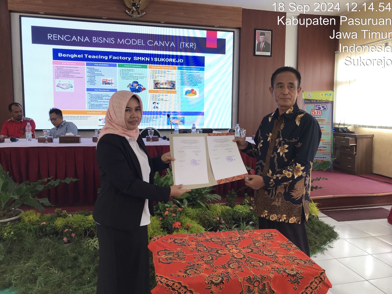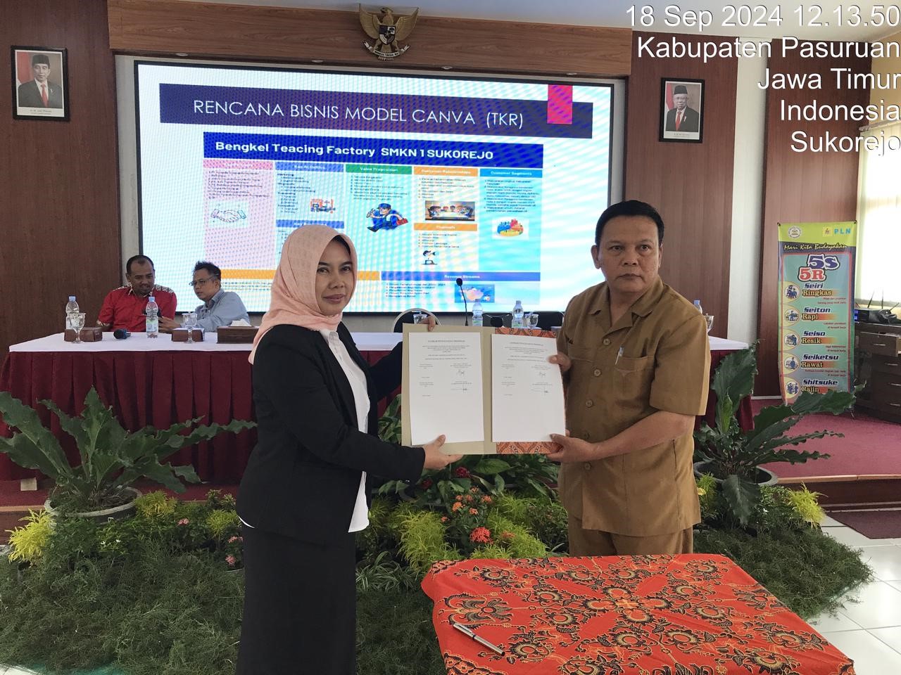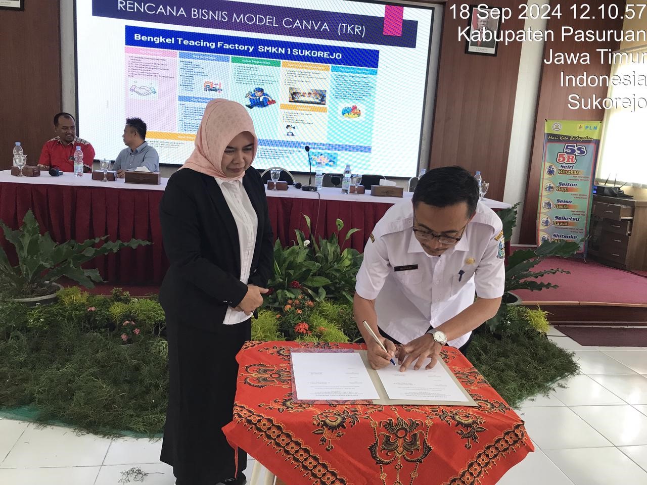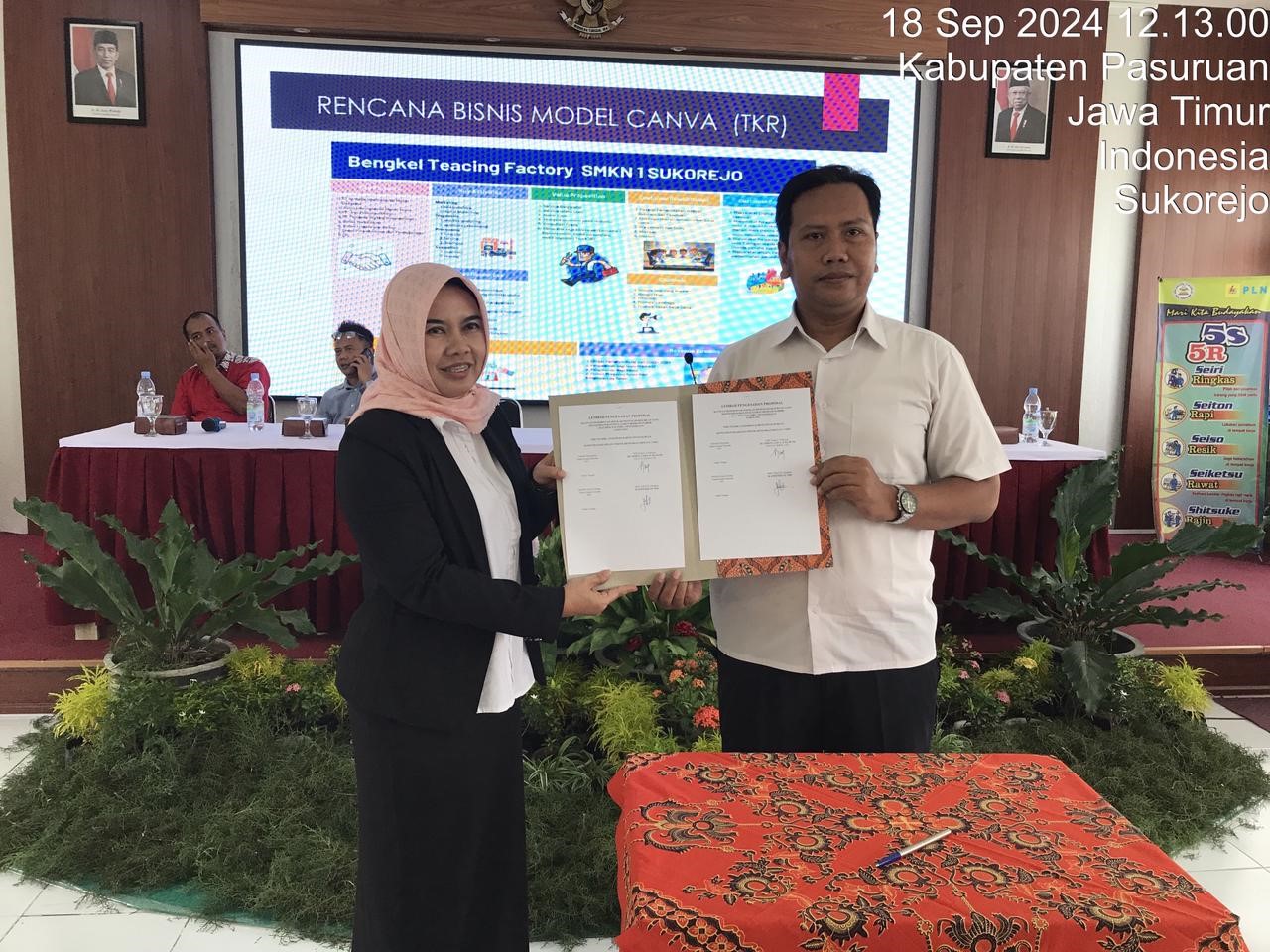 Perwakilan Dunia Usaha dan Dunia Industri (DUDI) yang bekerjasama dengan SMKN 1 Sukorejo dalam program Teaching Factory (Tefa) juga hadir dalam rapat ini. Mereka adalah Bapak Rudi Hartono, Kepala Bengkel PT. Armada Internasional Motor Daihatsu (PT. AIM) Surabaya, serta Bapak I Komang Budi Artha, Kepala Pabrik PT. Additon Karya Sembada wilayah Sukorejo.