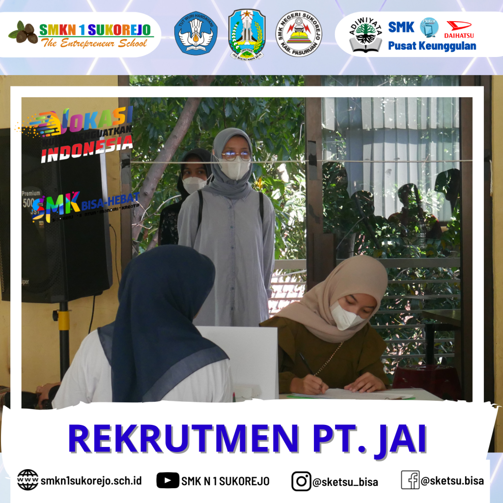 18 Agustus 2022, Aula SMK Negeri 1 Sukorejo kembali diramaikan alumni untuk datang melakukan seleksi kerja PT. Jatim Autocomp Indonesia (PT. JAI). Tahap seleksi yang diselenggarakan di sekolah mencakup tes buta warna, tangan basah, tinggi badan dan berat badan. Karena banyaknya peminat yang ingin mengikuti tes, maka pihak sekolah memutuskan untuk melaksanakan seleksi selama 2 hari.
