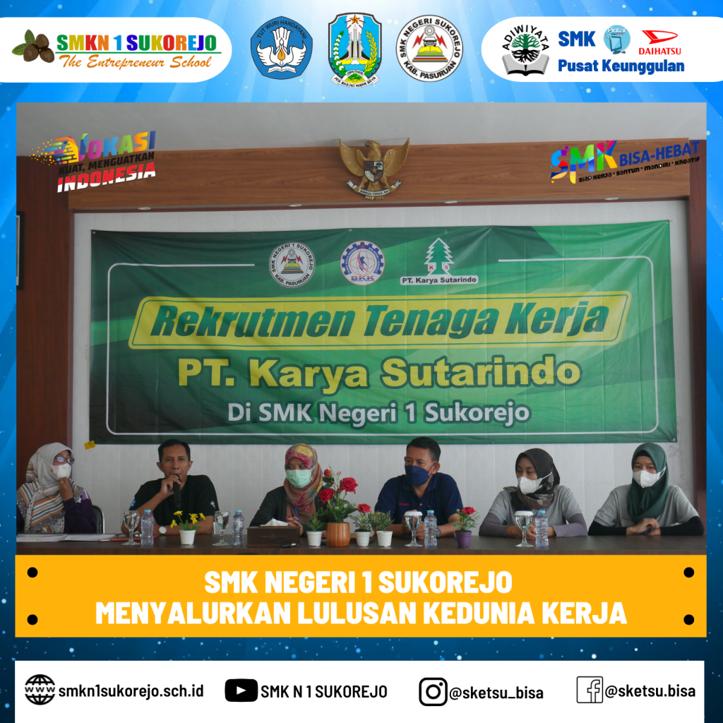 SMK Negeri 1 Sukorejo kembali mendapat kepercayaan DUDIKA dalam proses rekrutmen tenaga kerja. Hari ini Selasa, 16 Agustus 2022 PT. Karya Sutarindo mengadakan tes tulis dan wawancara yang diikuti oleh 25 Alumni SMK Negeri 1 Sukorejo.