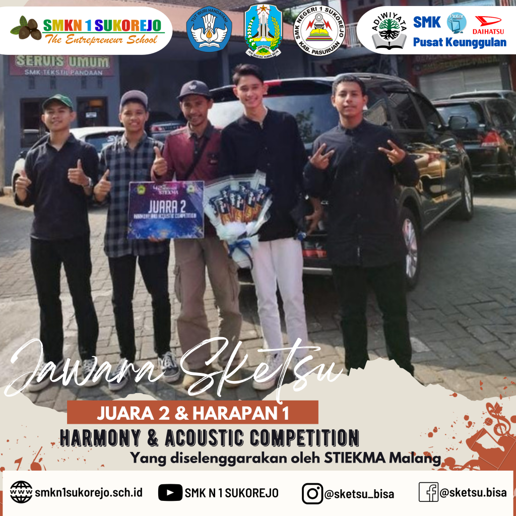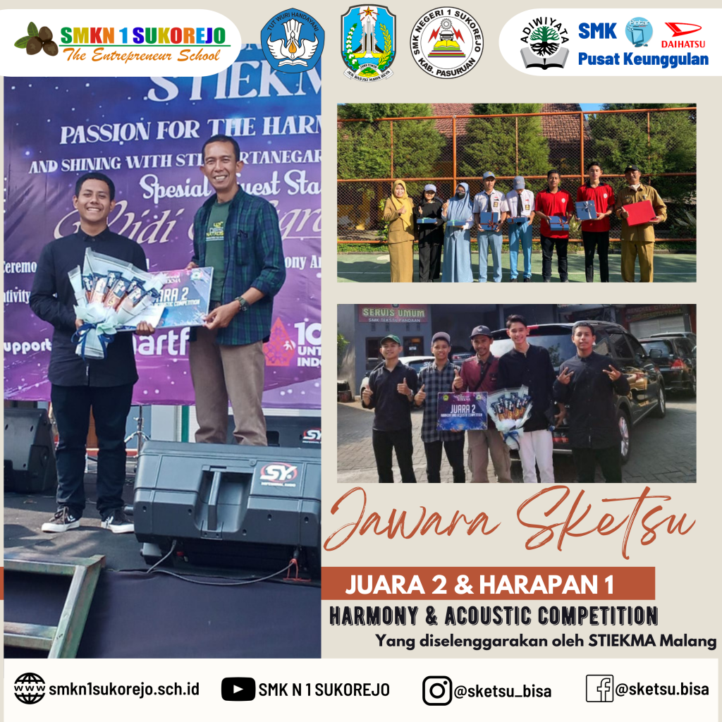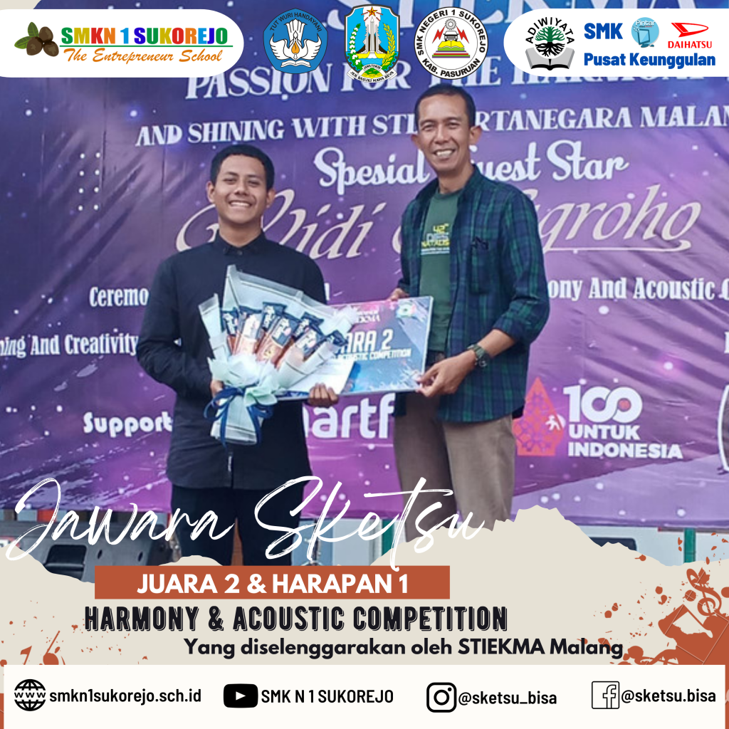 SELAMAT !!! SMK NEGERI 1 SUKOREJO RAIH JUARA 2 & HARAPAN 1 DALAM HARMONY AND ACOUSTIC COMPETITION YANG DISELENGGARAKAN OLEH STIEKMA MALANG
