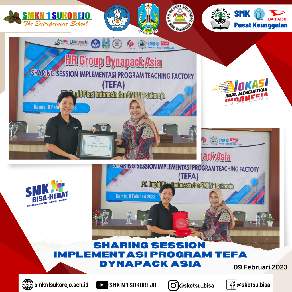 Dengan adanya sharing implementasi program tefa yang berjalan di SMK Negeri 1 Sukorejo, semoga kerjasama antara sekolah kami dengan PT. Rapid Plast Indonesia dapat terjalin dengan baik dan besar harapan kami agar dapat bekerjasama dengan anak perusahaan Dynapack Asia yang lain. Terimakasih PT. Rapid Plast Indonesia & Dynapack Asia.