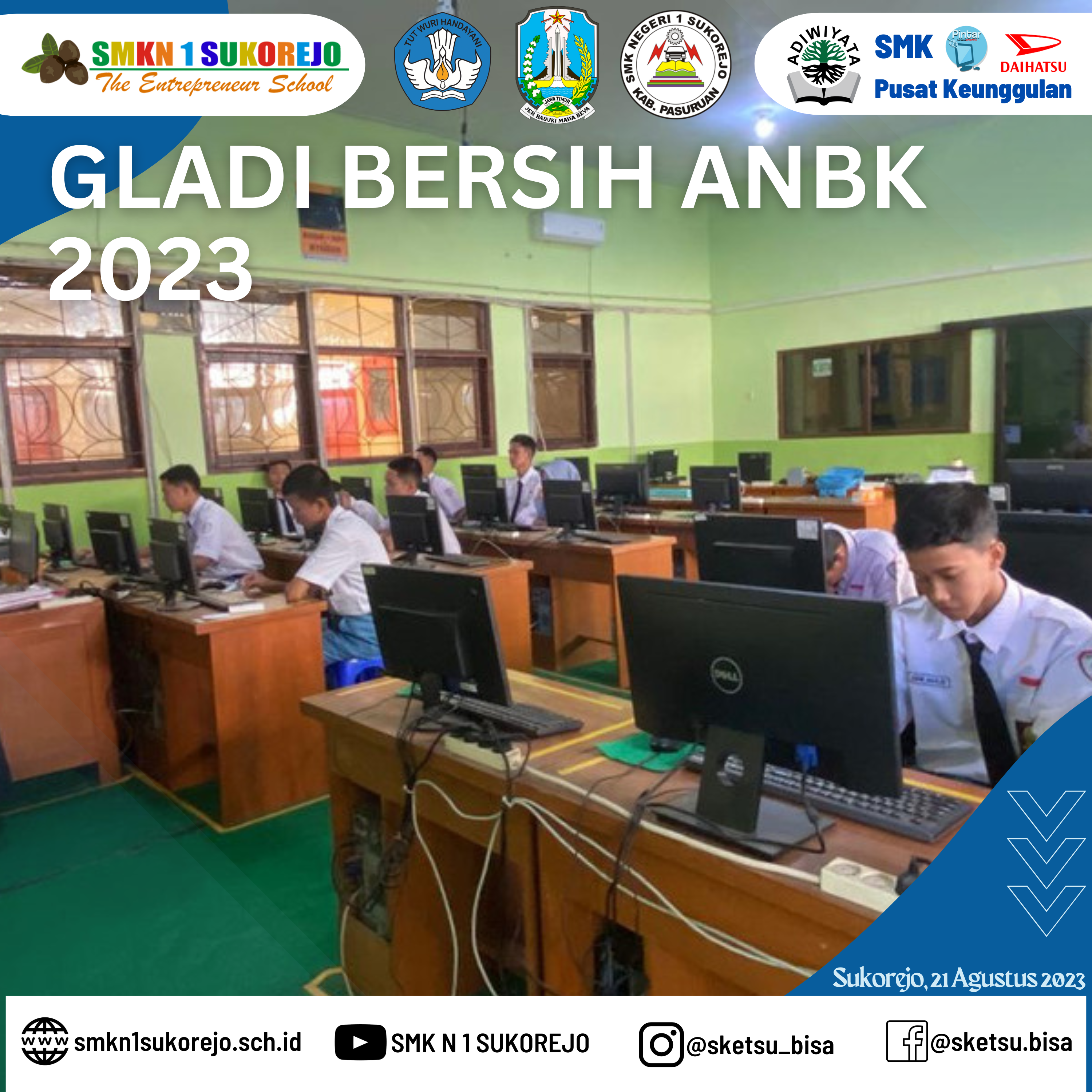 Menjelang pelaksanaan ANBK Tahun 2023, SMK Negeri 1 Sukorejo mengadakan gladi bersih untuk meminimalisir terjadinya kesalahan yang mungkin terjadi saat pelaksanaan ANBK.