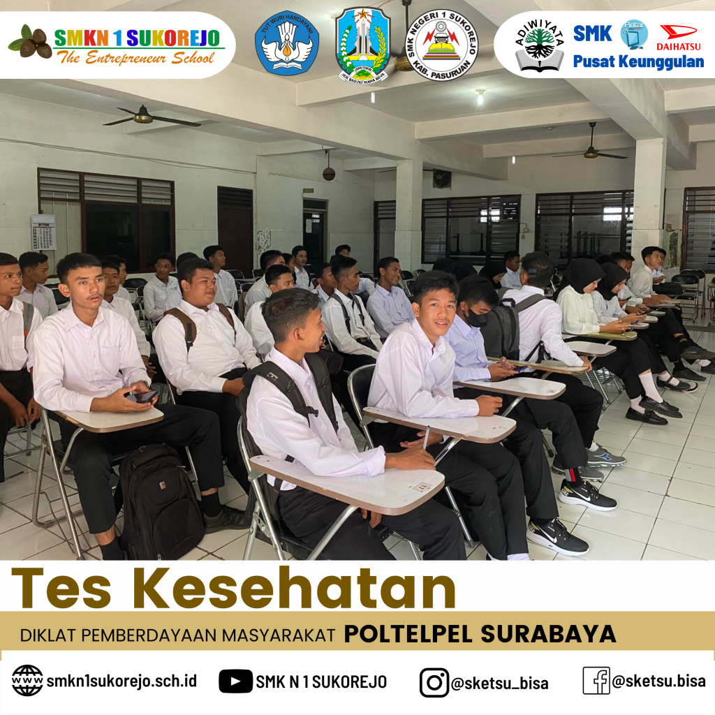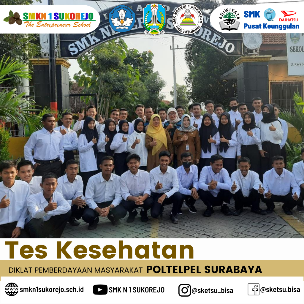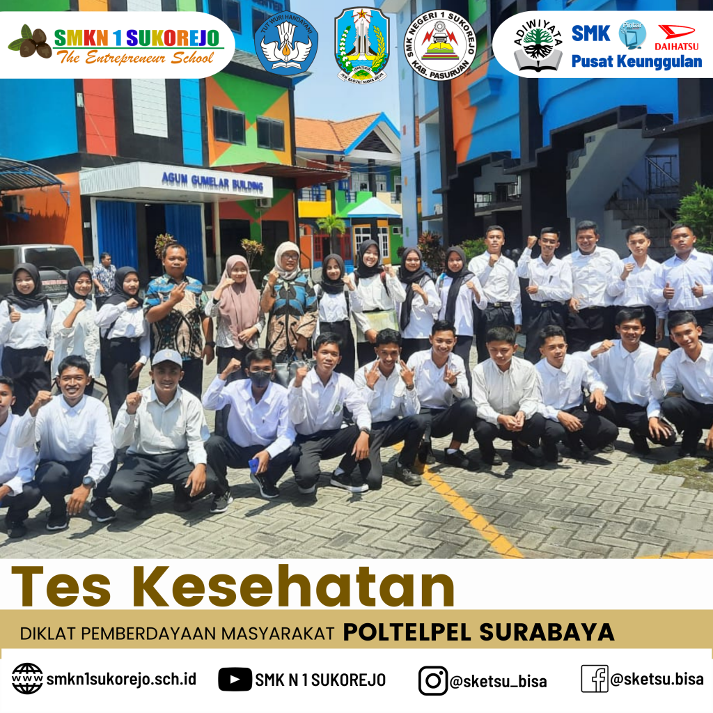 Surabaya, 20 Maret 2023 Bursa Kerja Khusus (BKK) SMK Negeri 1 Sukorejo mengantarkan 36 Siswa untuk mengikuti seleksi Diklat Pemberdayaan Masyarakat (DPM) yang diselenggarakan oleh Politeknik Pelayaran Surabaya.
