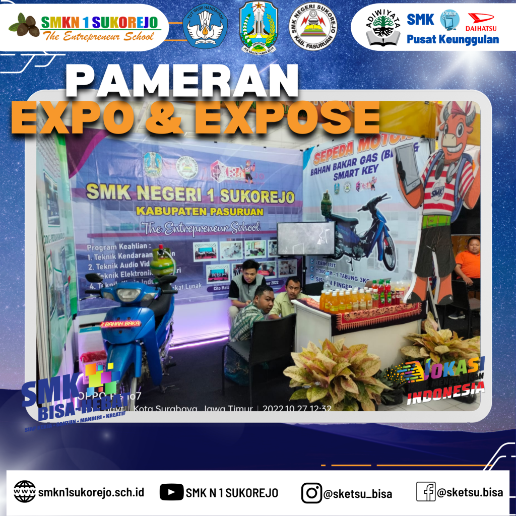 Sepeda dengan bahan bakar LPG karya inovatif SMK Negeri 1 Sukorejo menjadi salah satu dari ratusan karya inovasi SMK Pusat Keunggulan (PK) yang dipamerkan dalam pameran Expo Dan Expose yang digelar di City Of Tomorrow (Cito) Mall Surabaya pada 27-31 Oktober 2022.