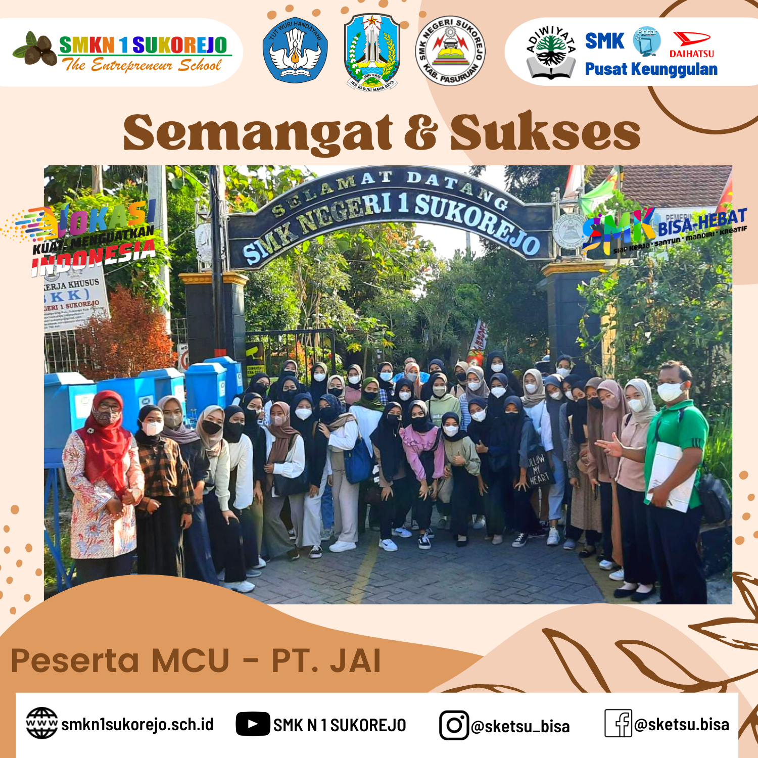 Alhamdulillah Jum’at berkah. SMK Negeri 1 Sukorejo mengantarkan 41 alumni lolos tes fisik dan tes tulis PT. JAI untuk mengikuti seleksi tahap akhir yaitu Medical Check Up.