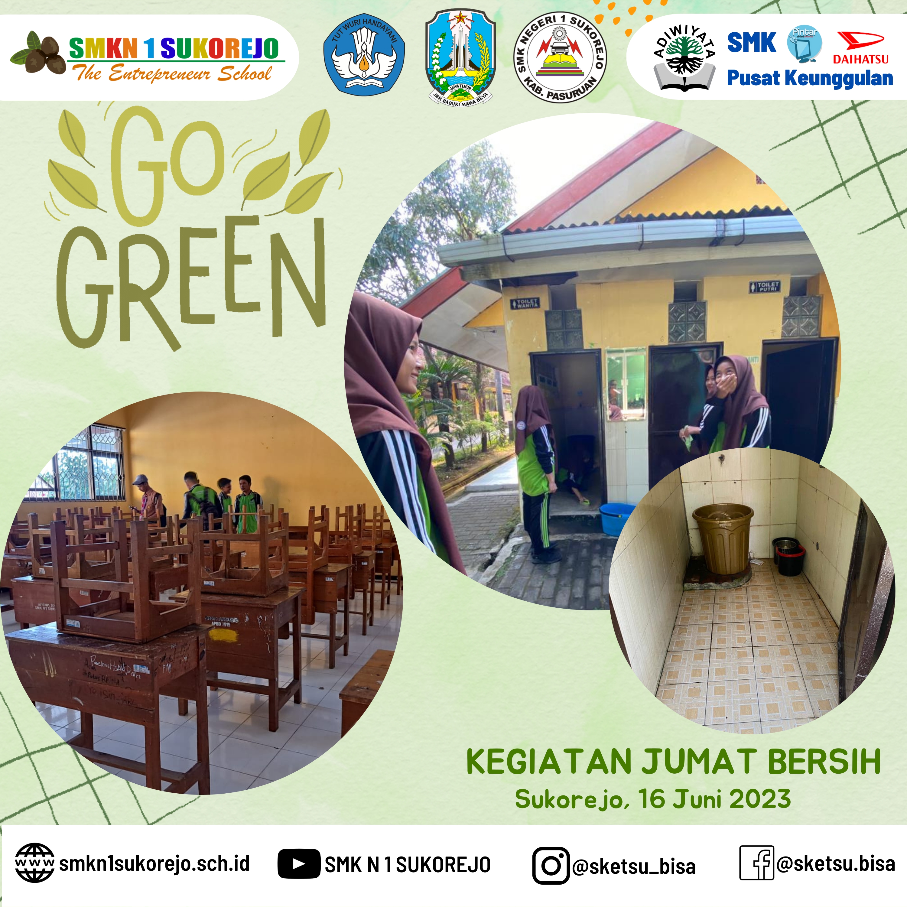 Sukorejo, 16 Juni 2023 Giat Jumat bersih kembali dilaksanakan di SMK Negeri 1 Sukorejo. Sebagai sekolah Adiwiyata, menjaga kebersihan dan keindahan lingkungan sekolah merupakan tanggung jawab semua SDM yang ada di SMK Negeri 1 Sukorejo.