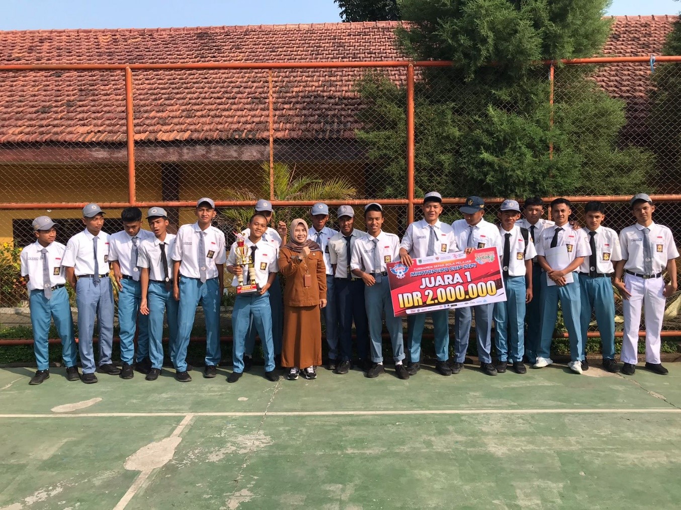 Kedua, penghargaan diberikan kepada Tim Sepak Bola SMKN 1 Sukorejo yang berhasil meraih Juara 1 dalam Kejuaraan Sepak Bola Tingkat SMA/SMK/MA Se-Kabupaten Pasuruan. Dengan semangat juang yang tinggi dan kerja sama tim yang solid, mereka berhasil mengalahkan lawan-lawan tangguh dan membawa pulang trofi kemenangan.