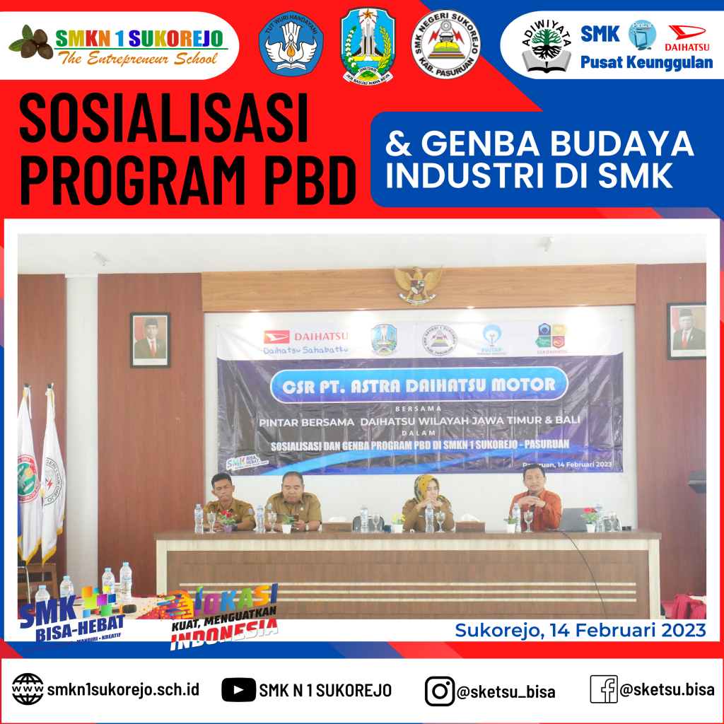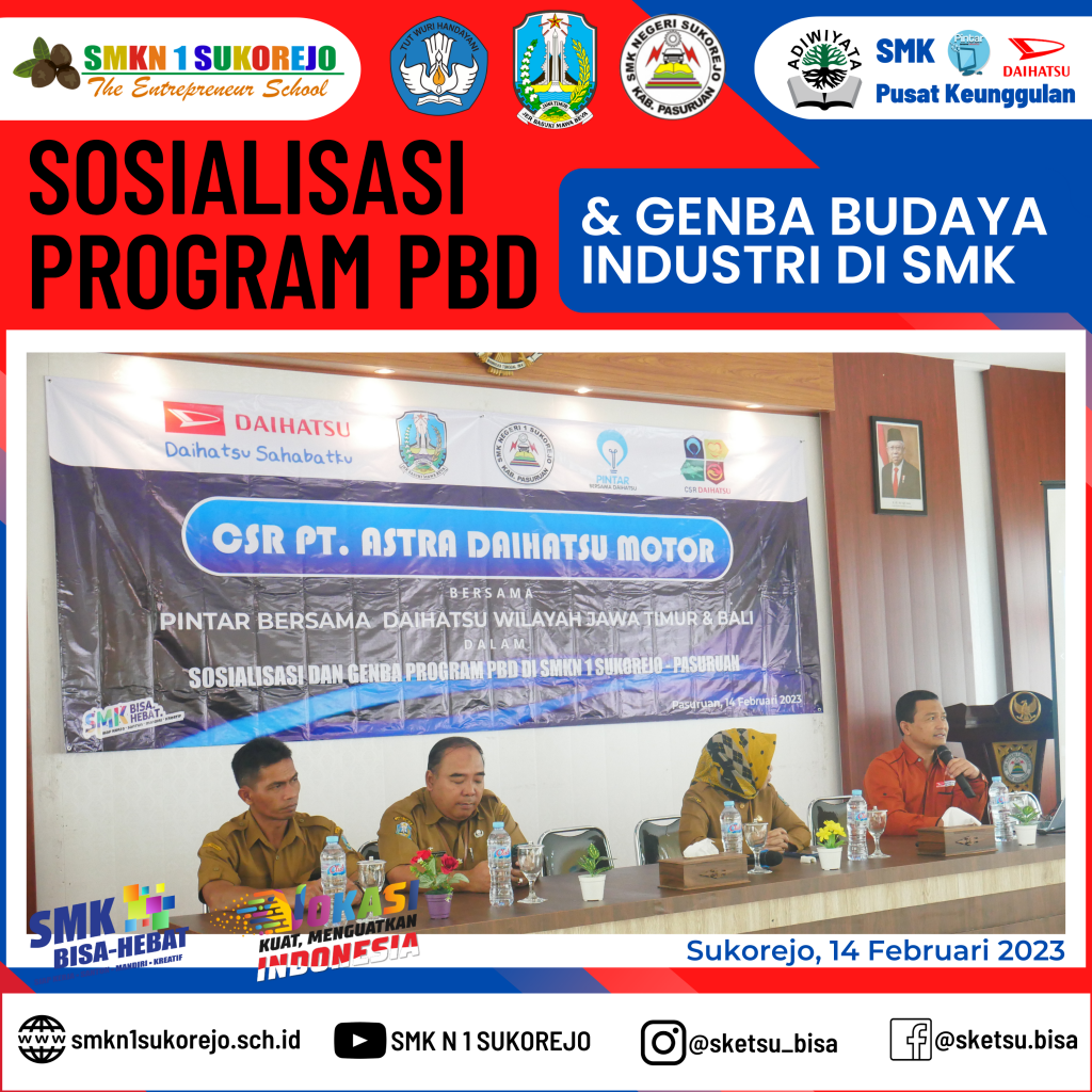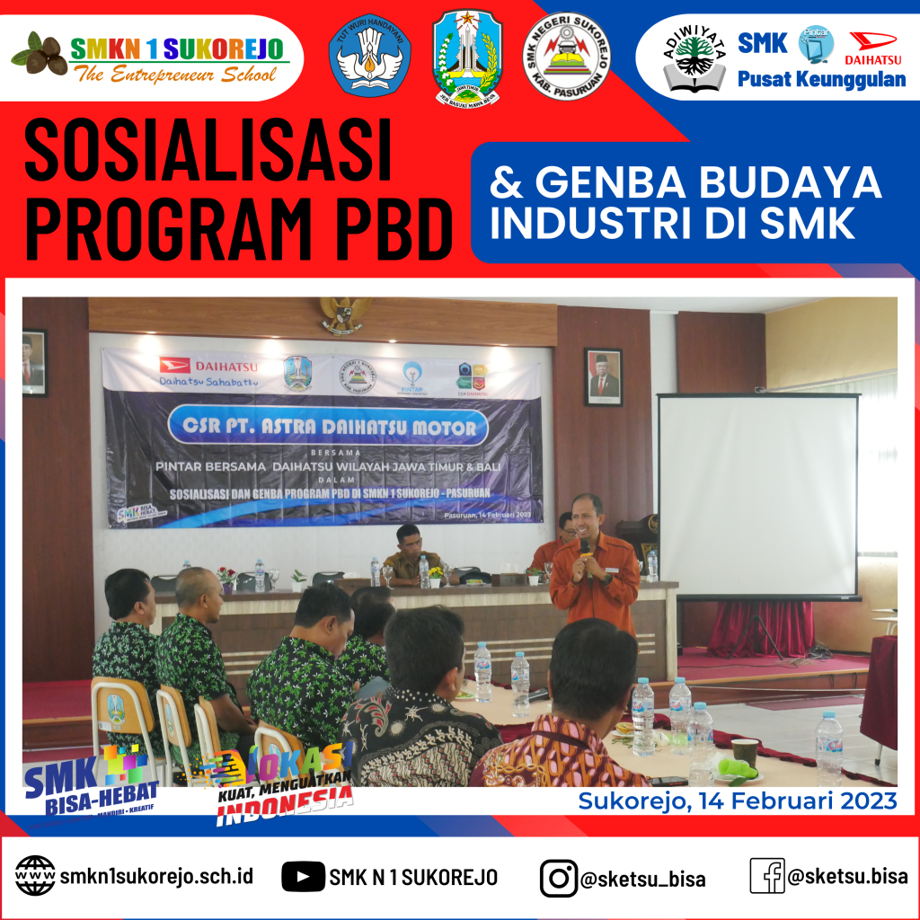 Sukorejo, 14 Februari 2023 PT. Astra Daihatsu Motor melaksanakan kegiatan Sosialisasi Program PBD dan Genba budaya Industri di SMK yang diikuti oleh 11 SMK se Jawa Timur diantaranya yaitu :