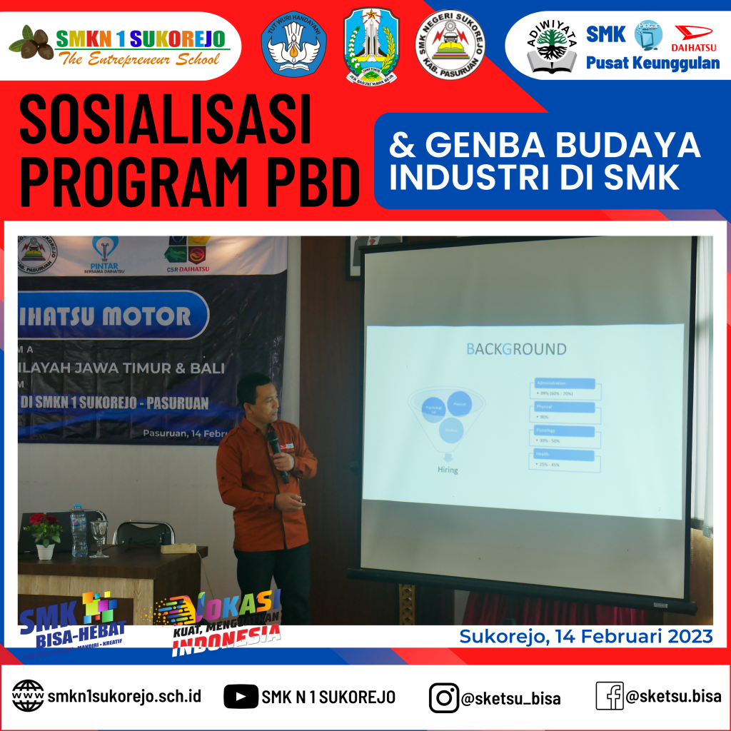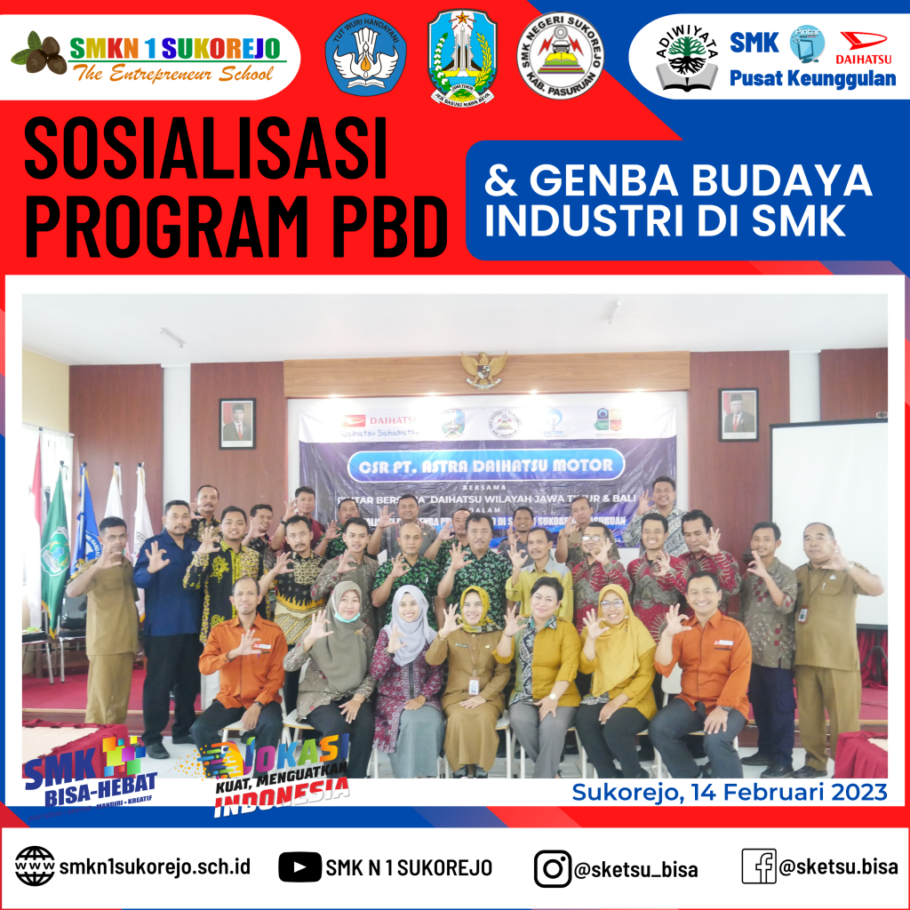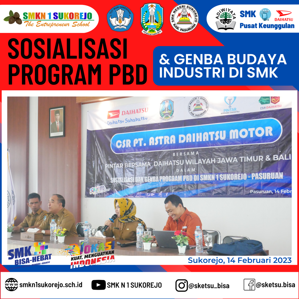 Sukorejo, 14 Februari 2023 PT. Astra Daihatsu Motor melaksanakan kegiatan Sosialisasi Program PBD dan Genba budaya Industri di SMK yang diikuti oleh 11 SMK se Jawa Timur diantaranya yaitu :