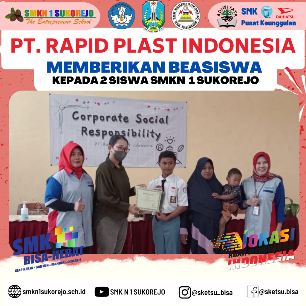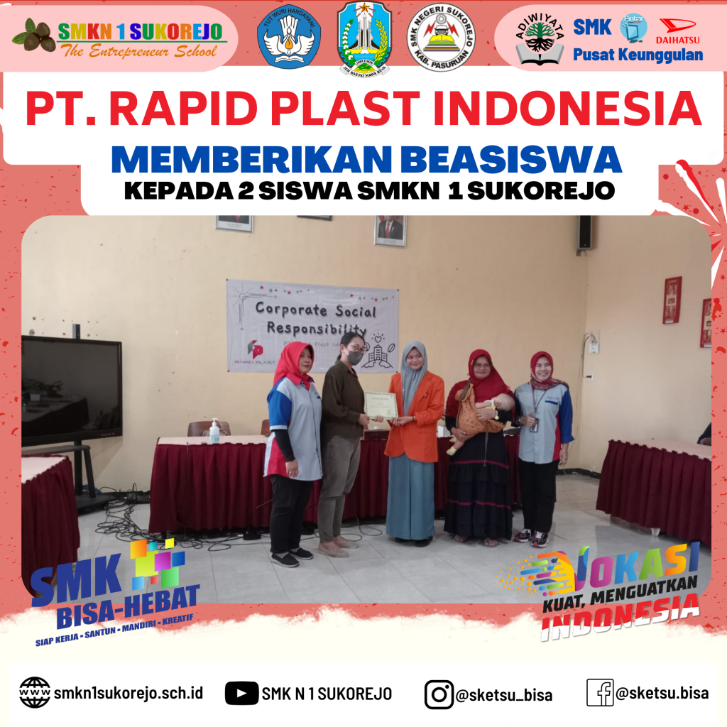 Terimakasih PT. Rapid Plast Indonesia atas kerjasama dan beasiswa yang telah diberikan kepada peserta didik di SMK Negeri 1 Sukorejo.