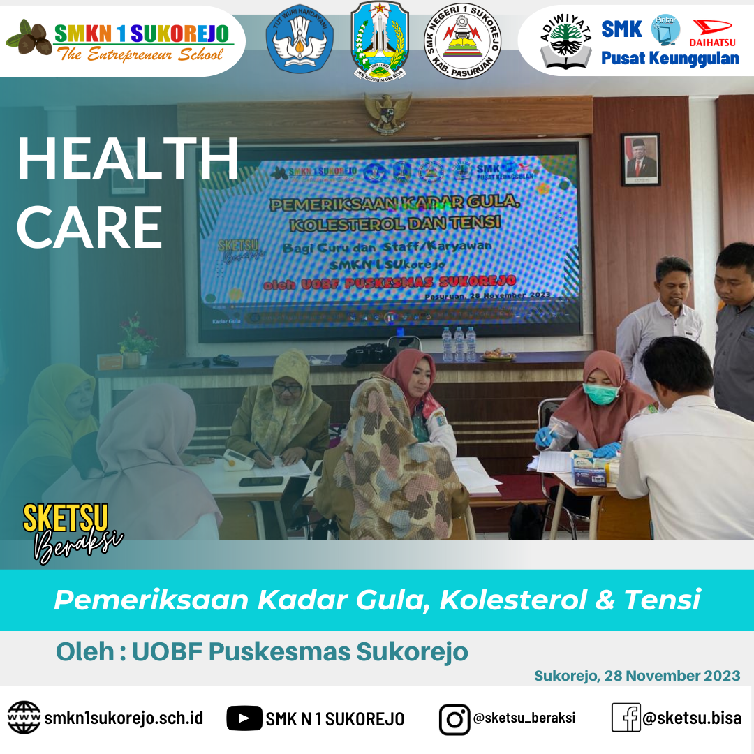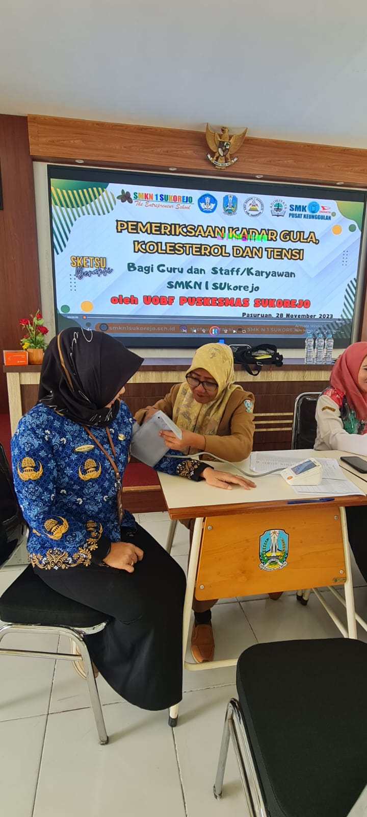 Sukorejo, 28 November 2023 – Pada hari Selasa kemarin, SMKN 1 Sukorejo menjadi saksi pelaksanaan kegiatan pemeriksaan kesehatan yang dilakukan oleh UOBF Puskesmas Sukorejo. Aula sekolah menjadi tempat di mana guru dan staf karyawan SMKN 1 Sukorejo antusias menjalani pemeriksaan kadar gula, kolesterol, dan tensi.