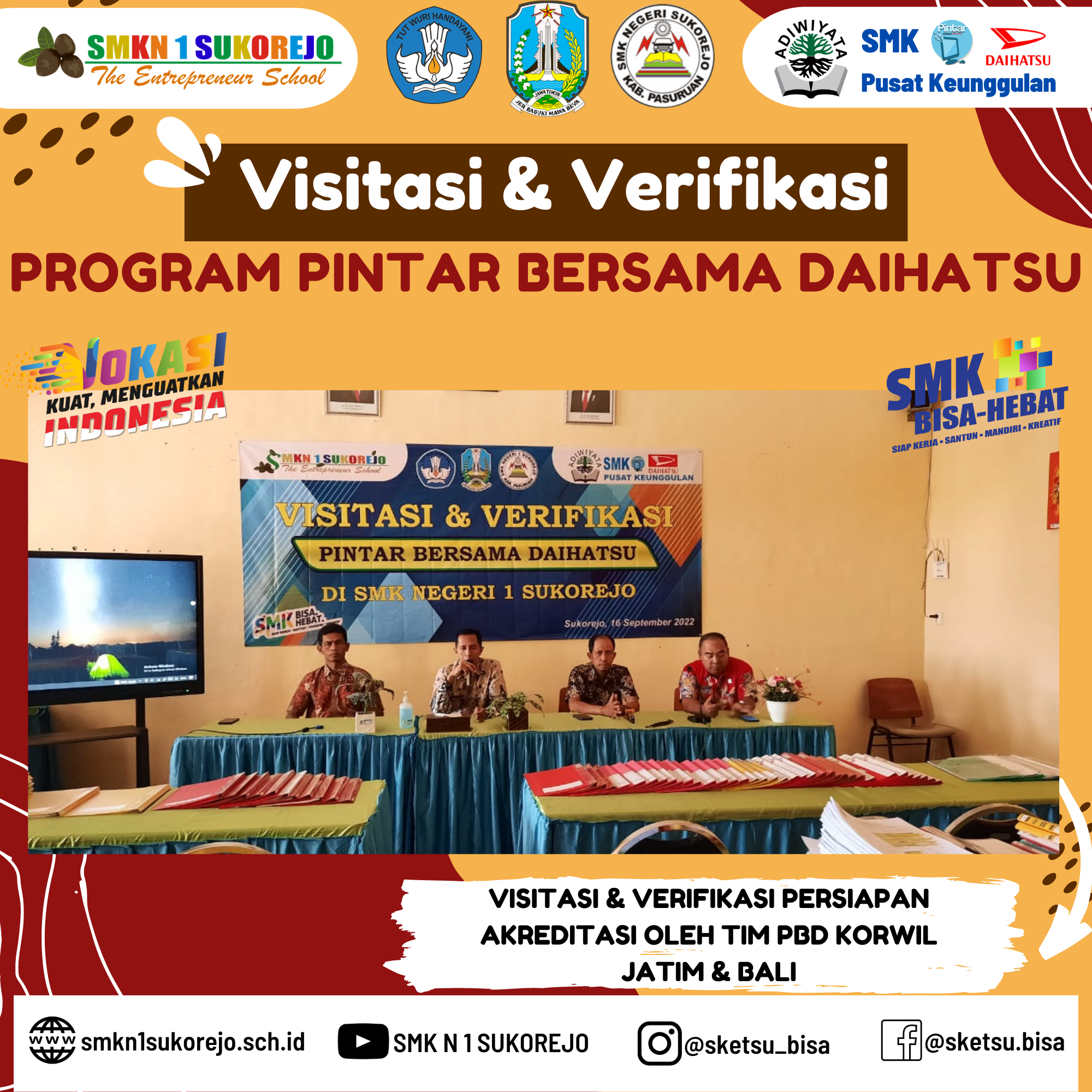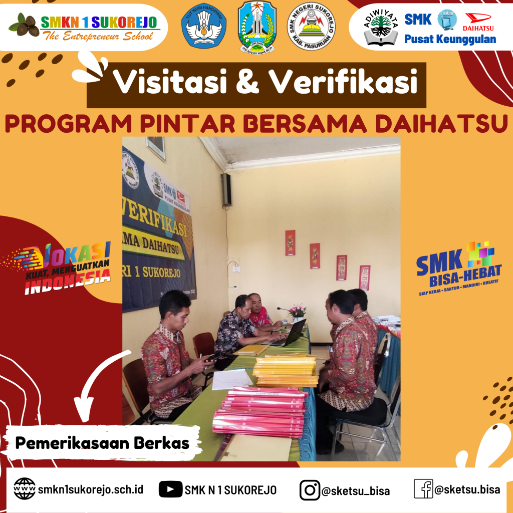 VISITASI & VERIFIKASI PROGRAM PINTAR BERSAMA DAIHATSU (PBD) DI SMK NEGERI 1 SUKOREJO
