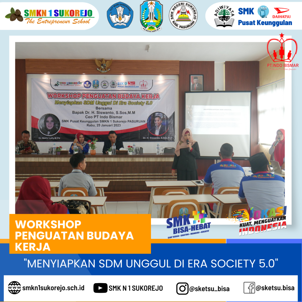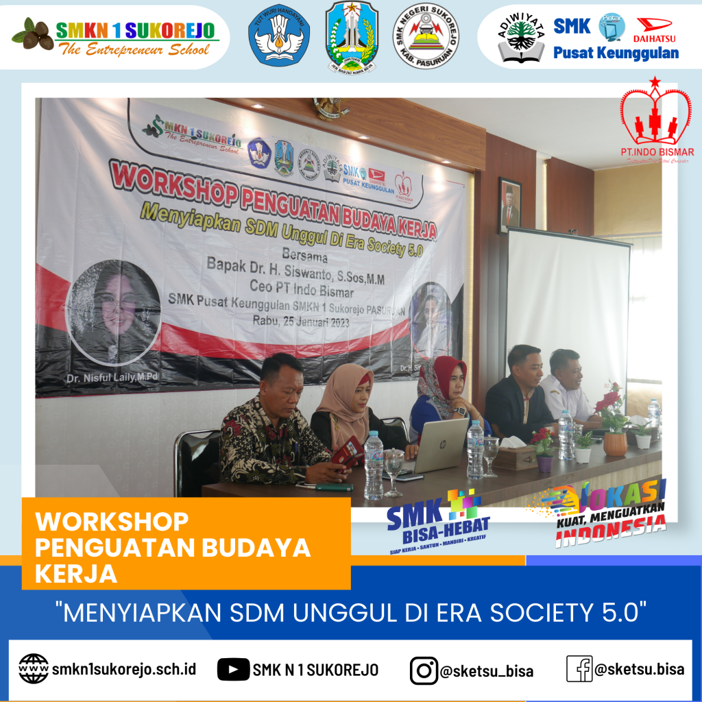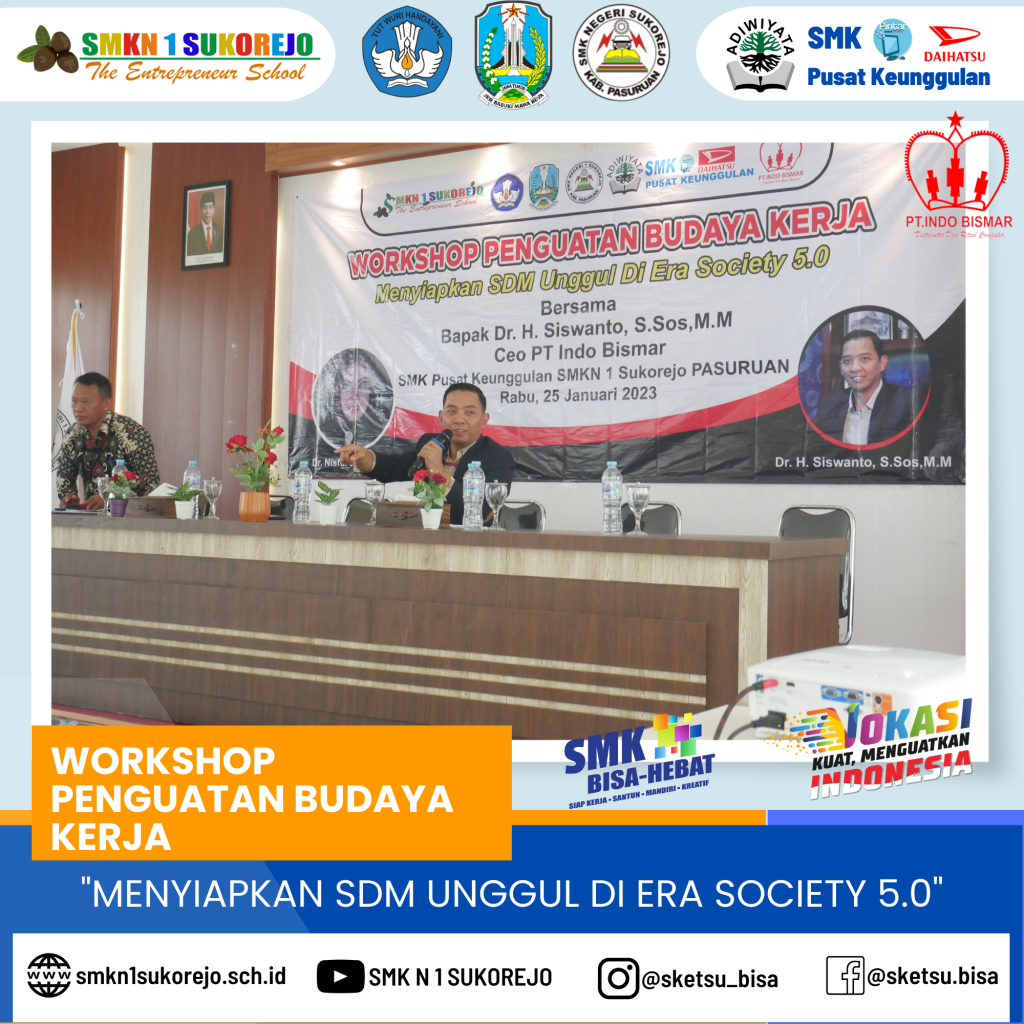 Sukorejo, 25 Januari 2023 PT. Indo Bismar kembali hadir menjadi Narasumber Workshop Penguatan Budaya Kerja dengan tema “Menyiapkan SDM Unggul Di Era Society 5.0”