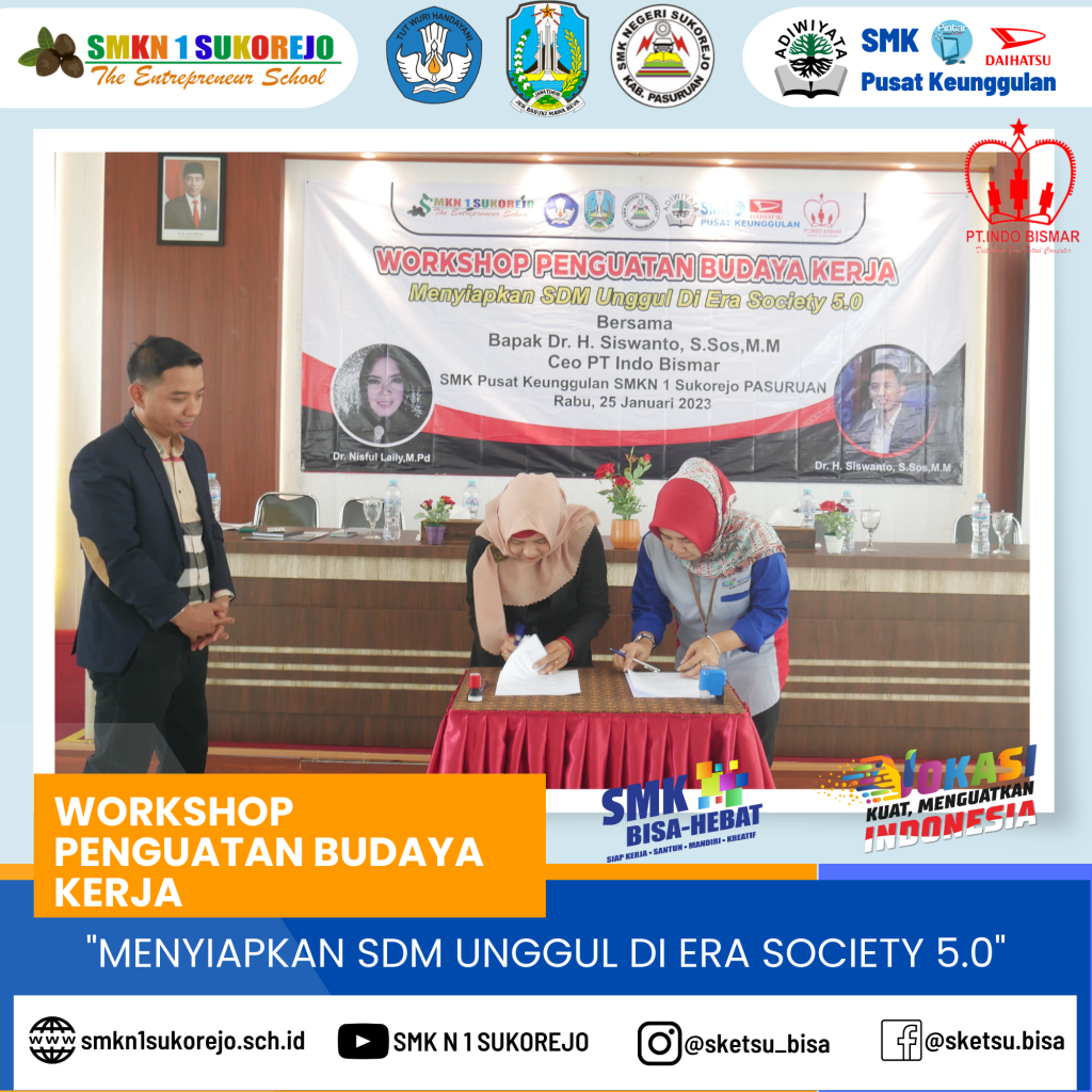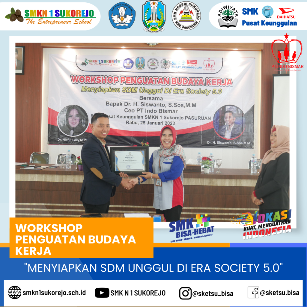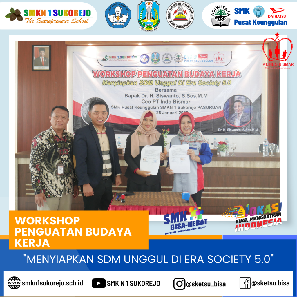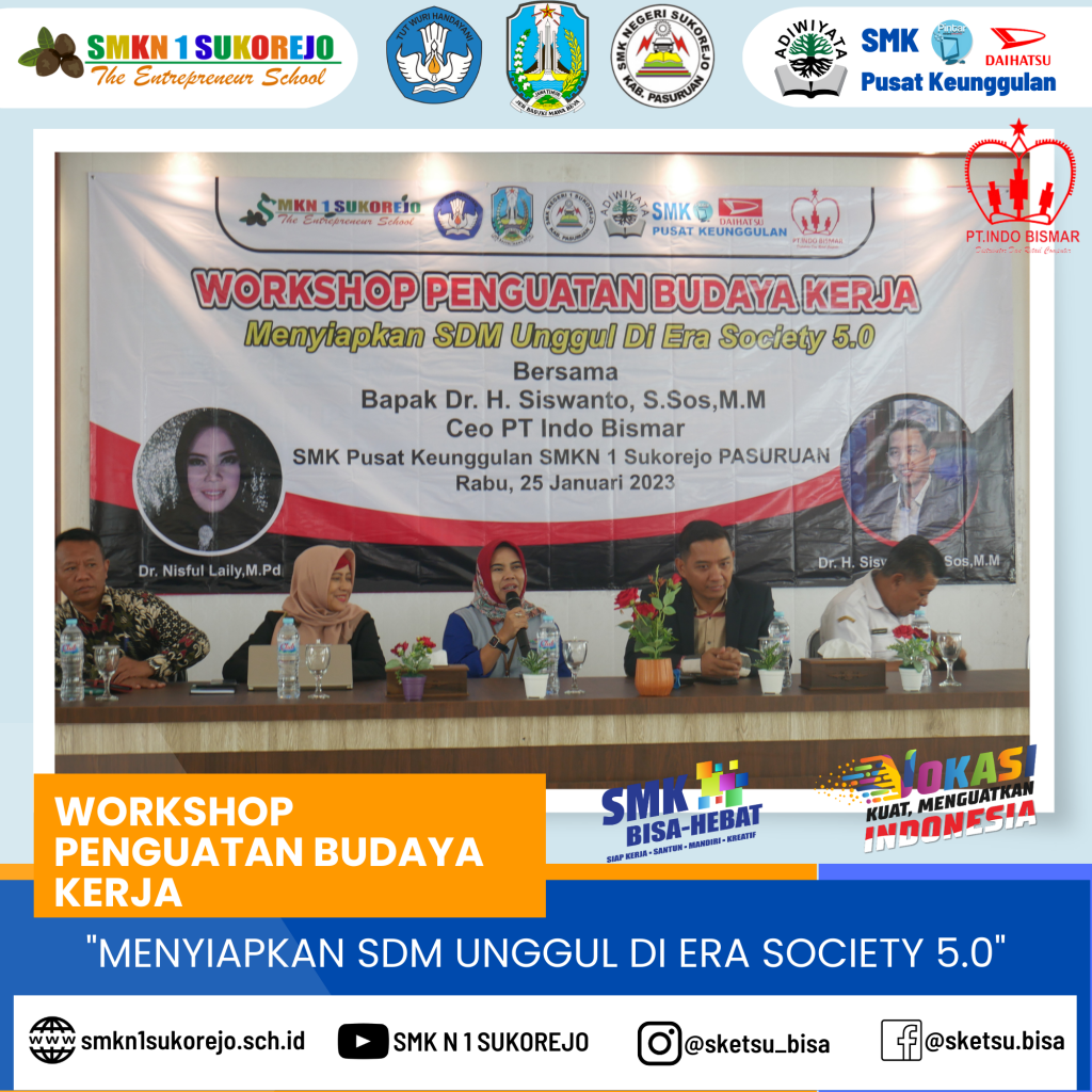 Sukorejo, 25 Januari 2023 PT. Indo Bismar kembali hadir menjadi Narasumber Workshop Penguatan Budaya Kerja dengan tema “Menyiapkan SDM Unggul Di Era Society 5.0”